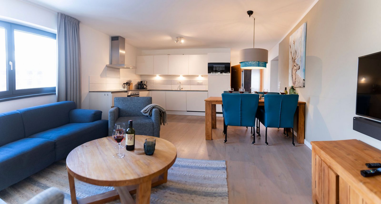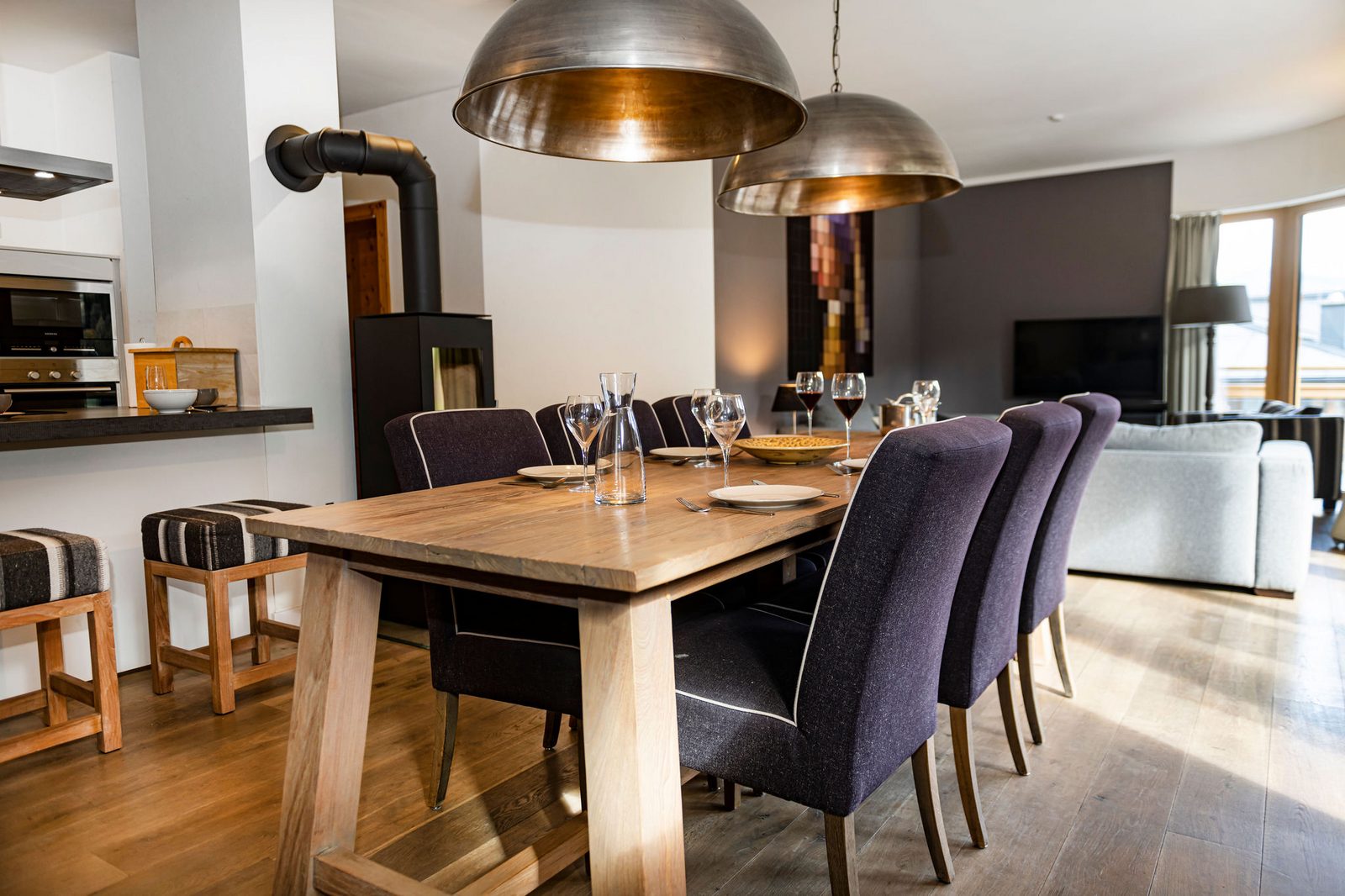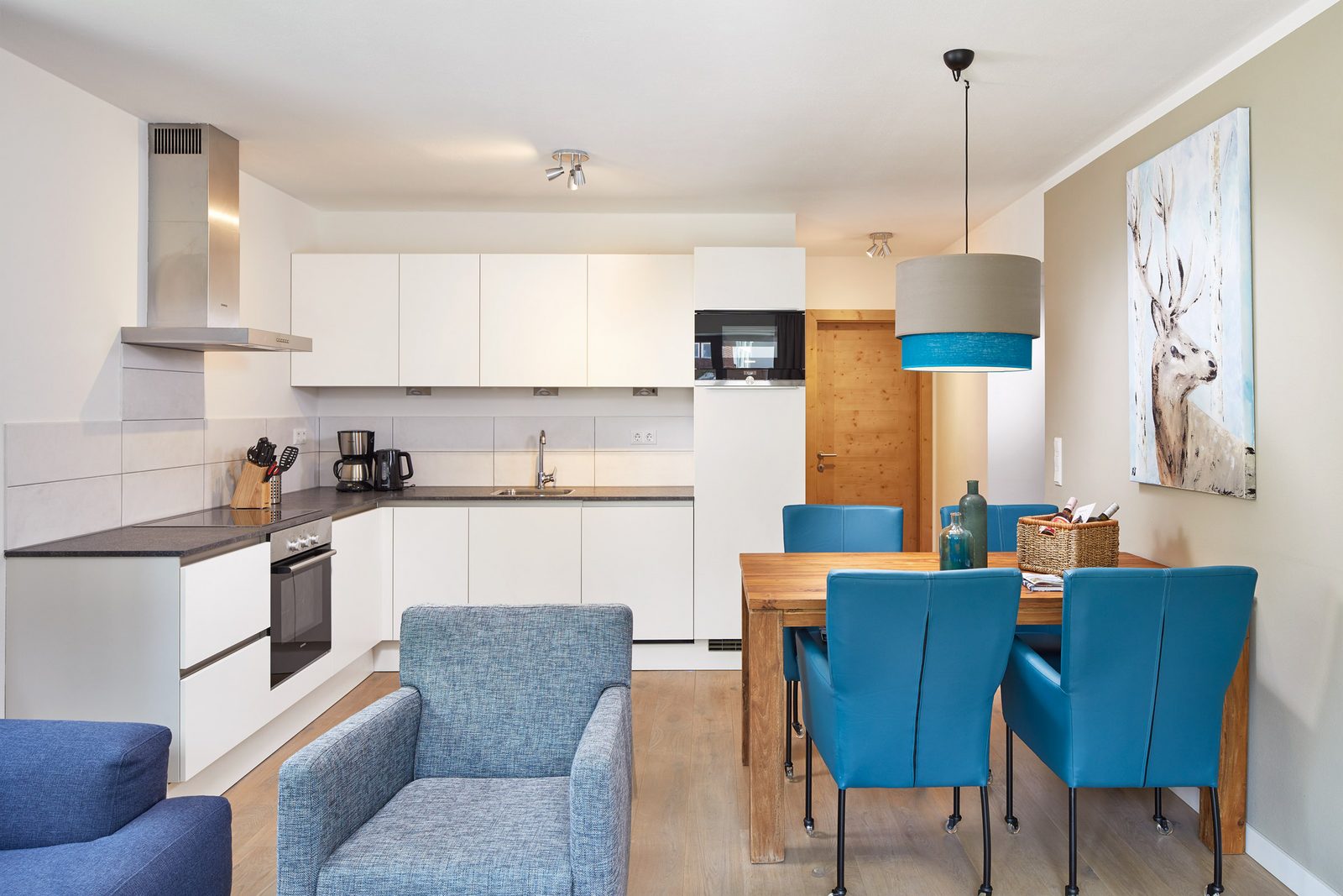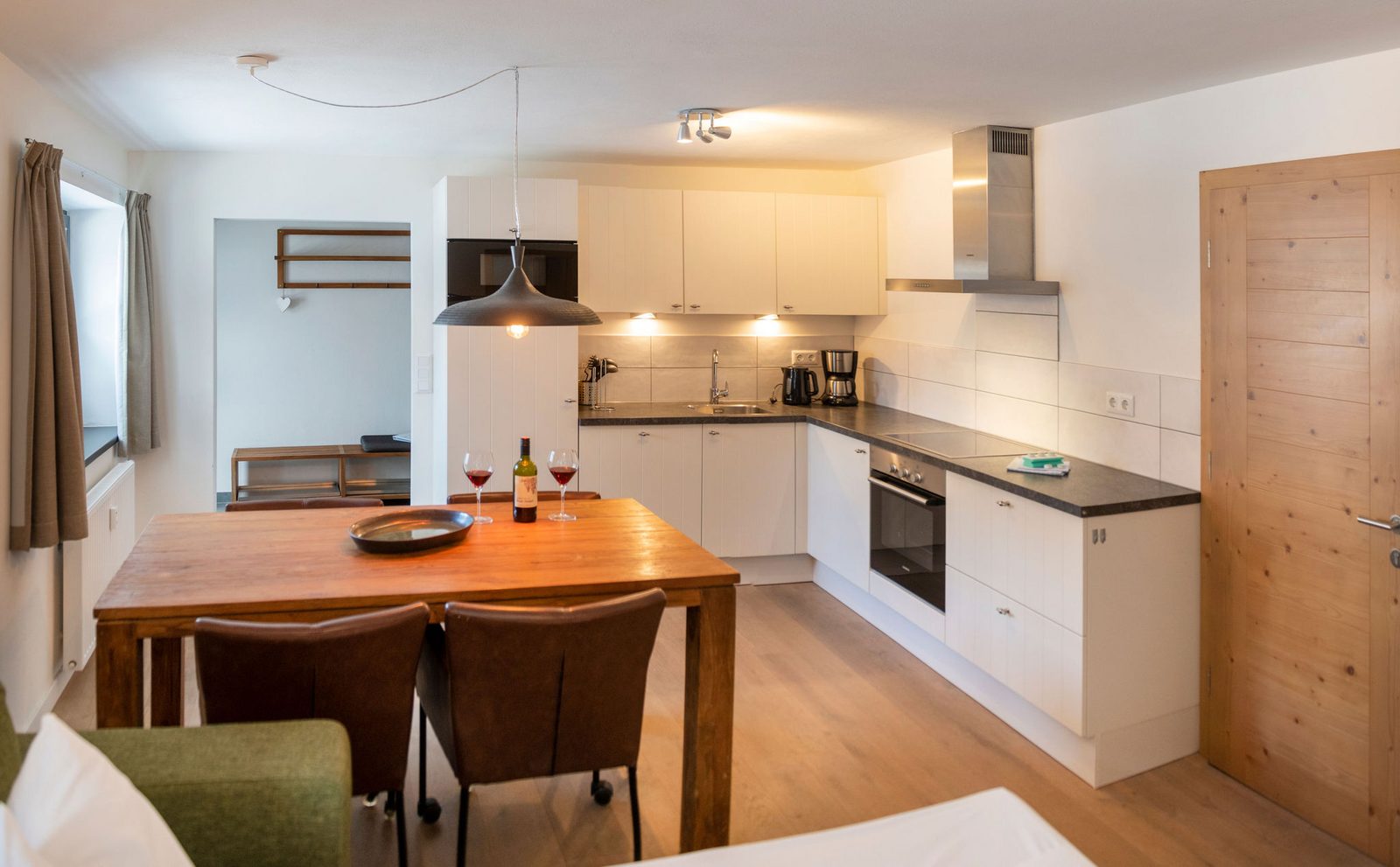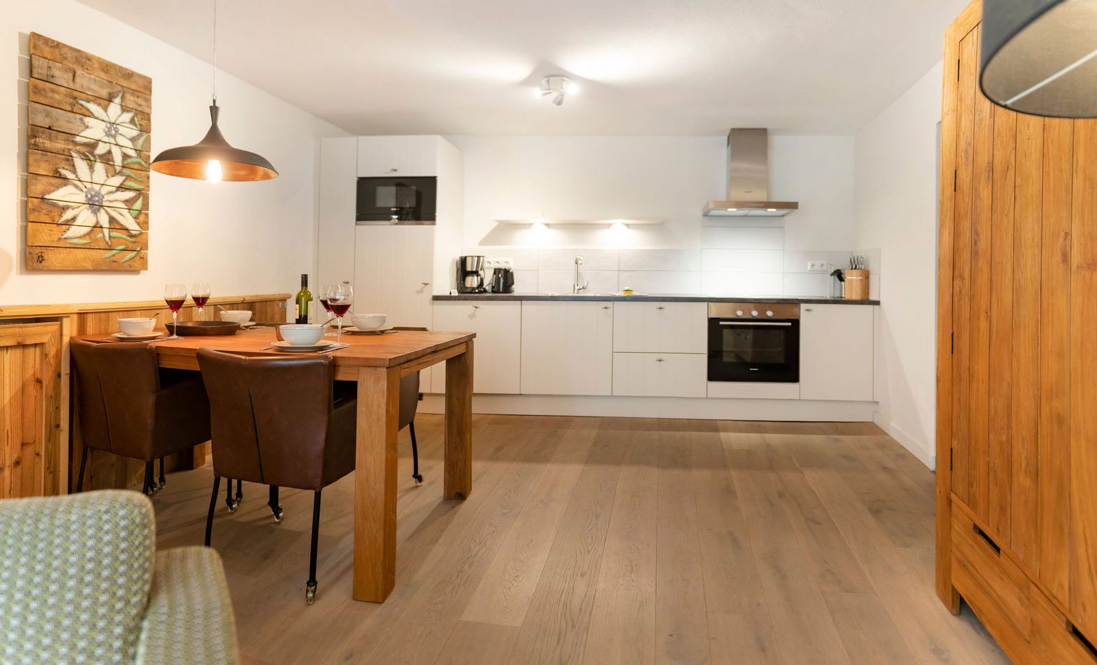 Kristall Plaza Niederau offers 5 stylish apartments for 4 to 10 guests and a luxurious penthouse, each with a terrace or balcony and panoramic mountain views. Located directly opposite the Markbachjoch gondola, the property provides easy access to winter slopes and summer activities, featuring modern interiors, Tieleman design kitchens, and luxurious bathrooms for a comfortable stay all year round.
