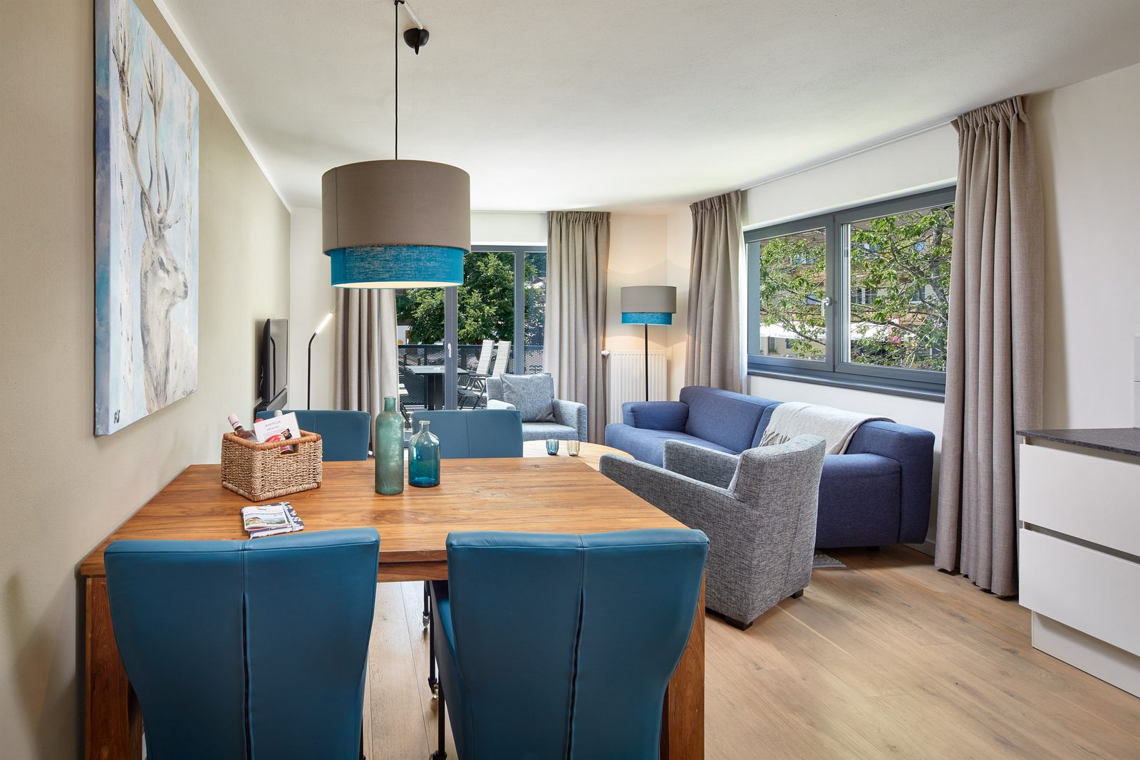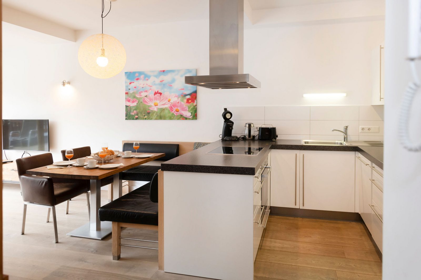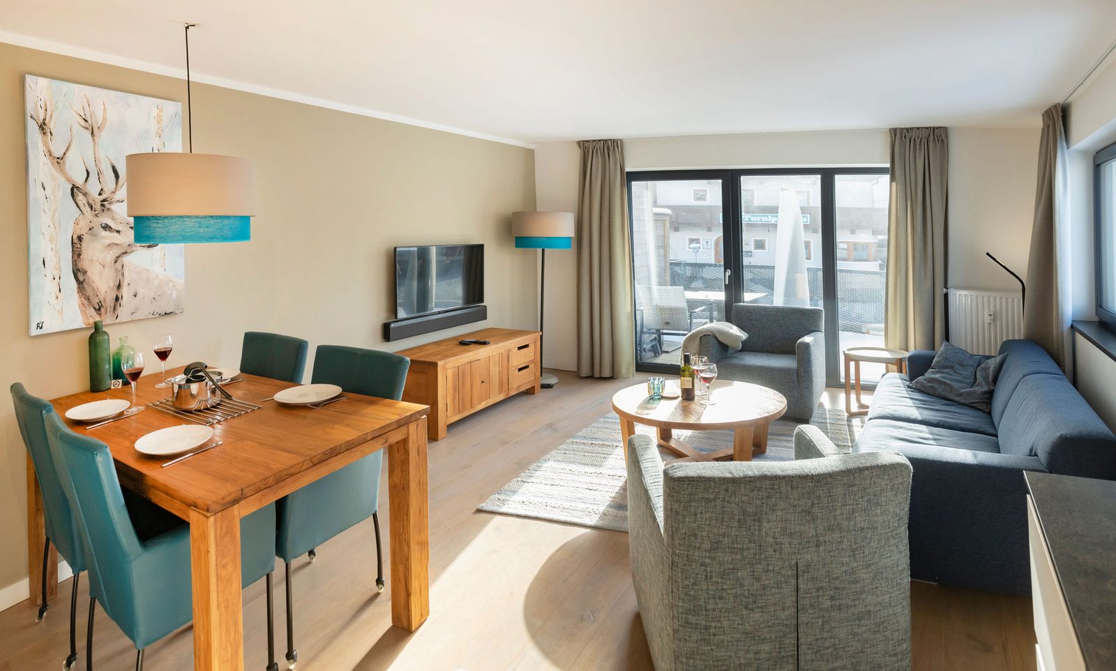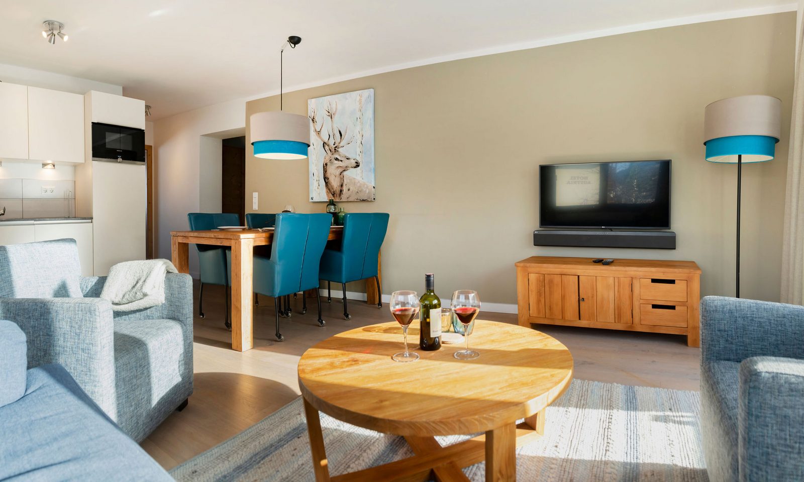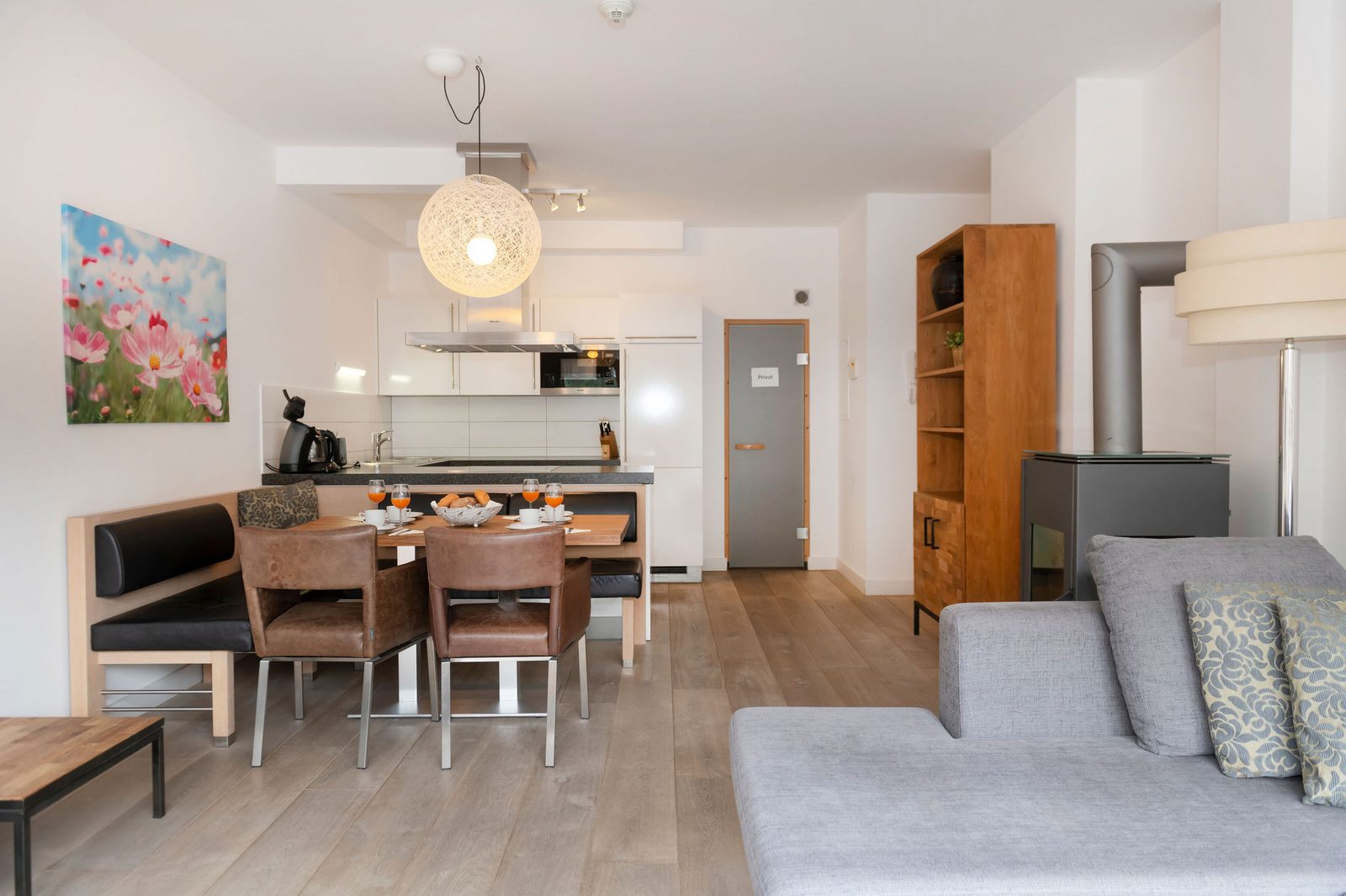 Kristall Plaza Niederau offers 5 stylish apartments for 4 to 10 guests and a luxurious penthouse, each with a terrace or balcony and panoramic mountain views. Located directly opposite the Markbachjoch gondola, the property provides easy access to winter slopes and summer activities, featuring modern interiors, Tieleman design kitchens, and luxurious bathrooms for a comfortable stay all year round.