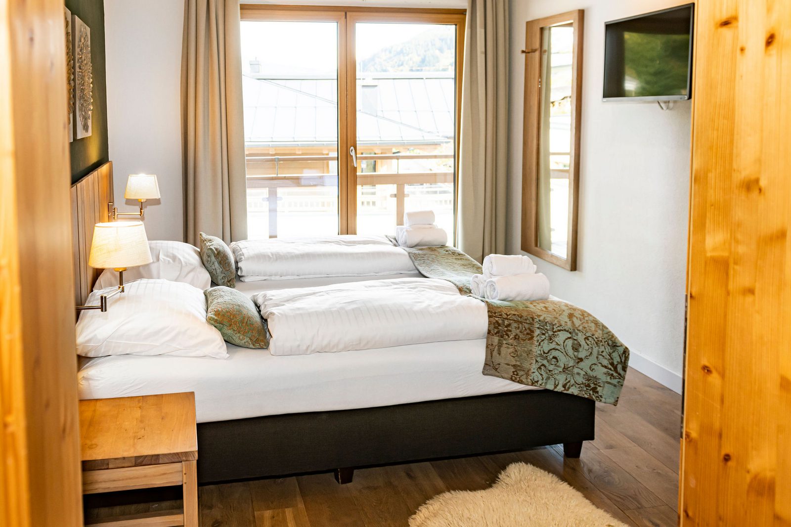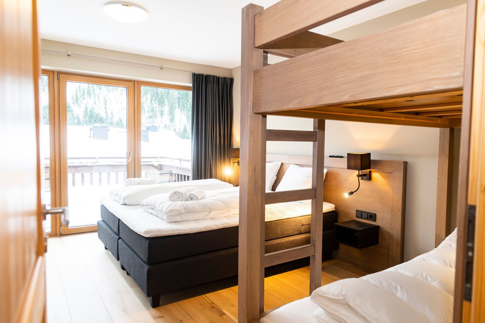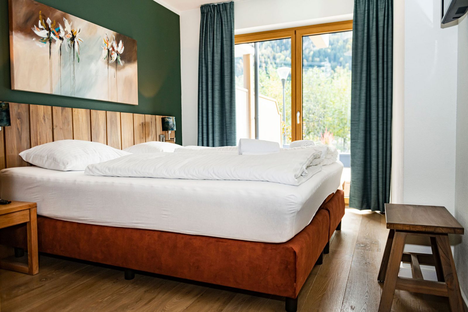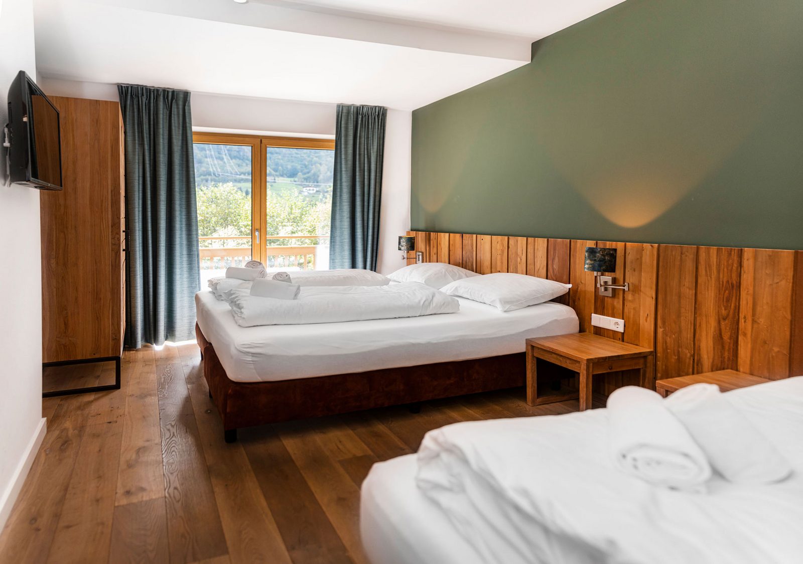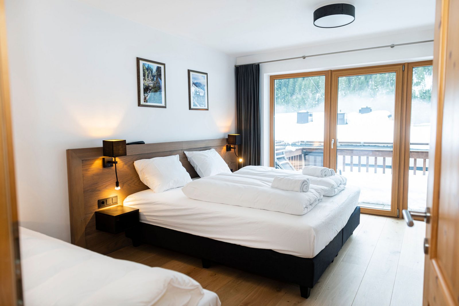 The hotel features modern rooms and luxury suites with king-size beds, smart TVs, Nespresso machines, and spacious bathrooms with walk-in showers. Guests can securely store their ski or cycling equipment in the dedicated storage room and enjoy a central location for both winter slopes and summer outdoor activities. The hotel is adults-only (15+).