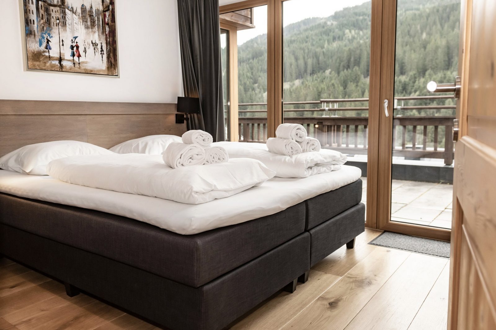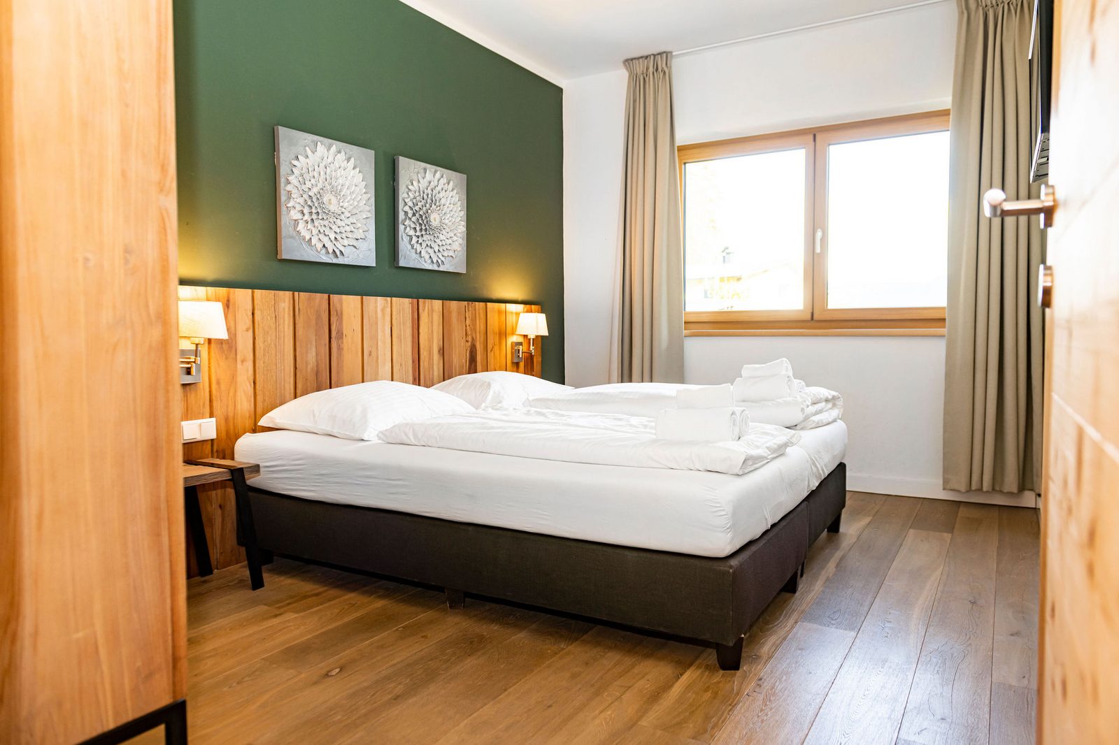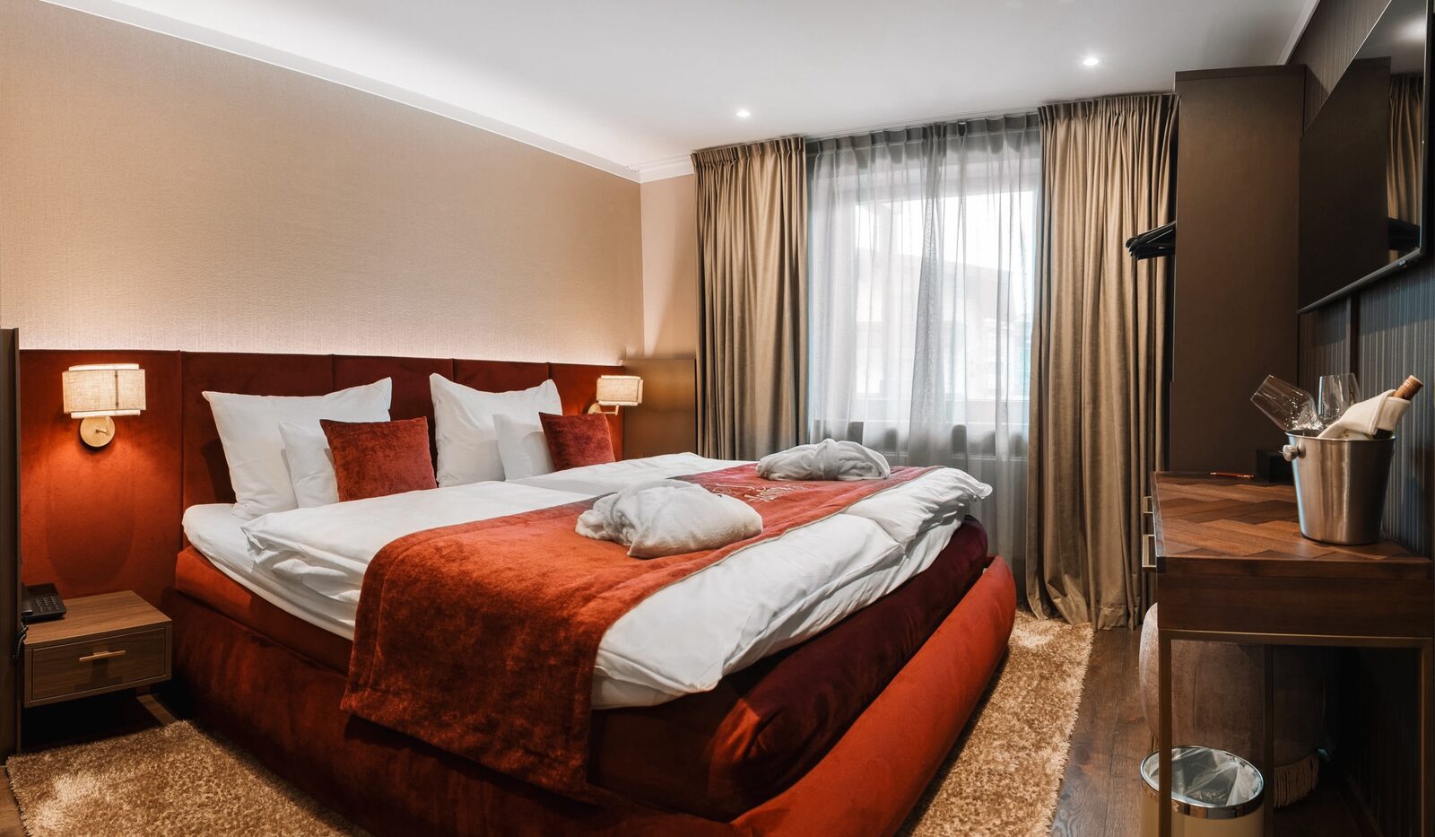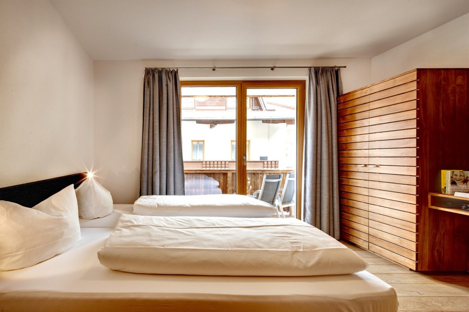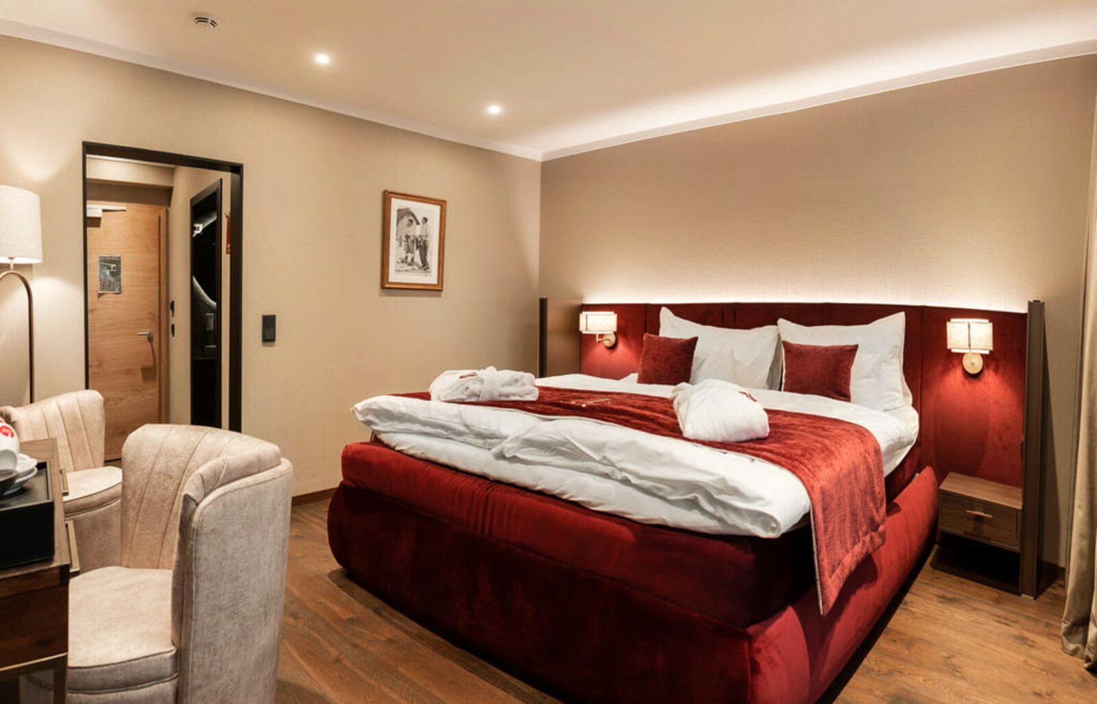 The hotel features modern rooms and luxury suites with king-size beds, smart TVs, Nespresso machines, and spacious bathrooms with walk-in showers. Guests can securely store their ski or cycling equipment in the dedicated storage room and enjoy a central location for both winter slopes and summer outdoor activities. The hotel is adults-only (15+).