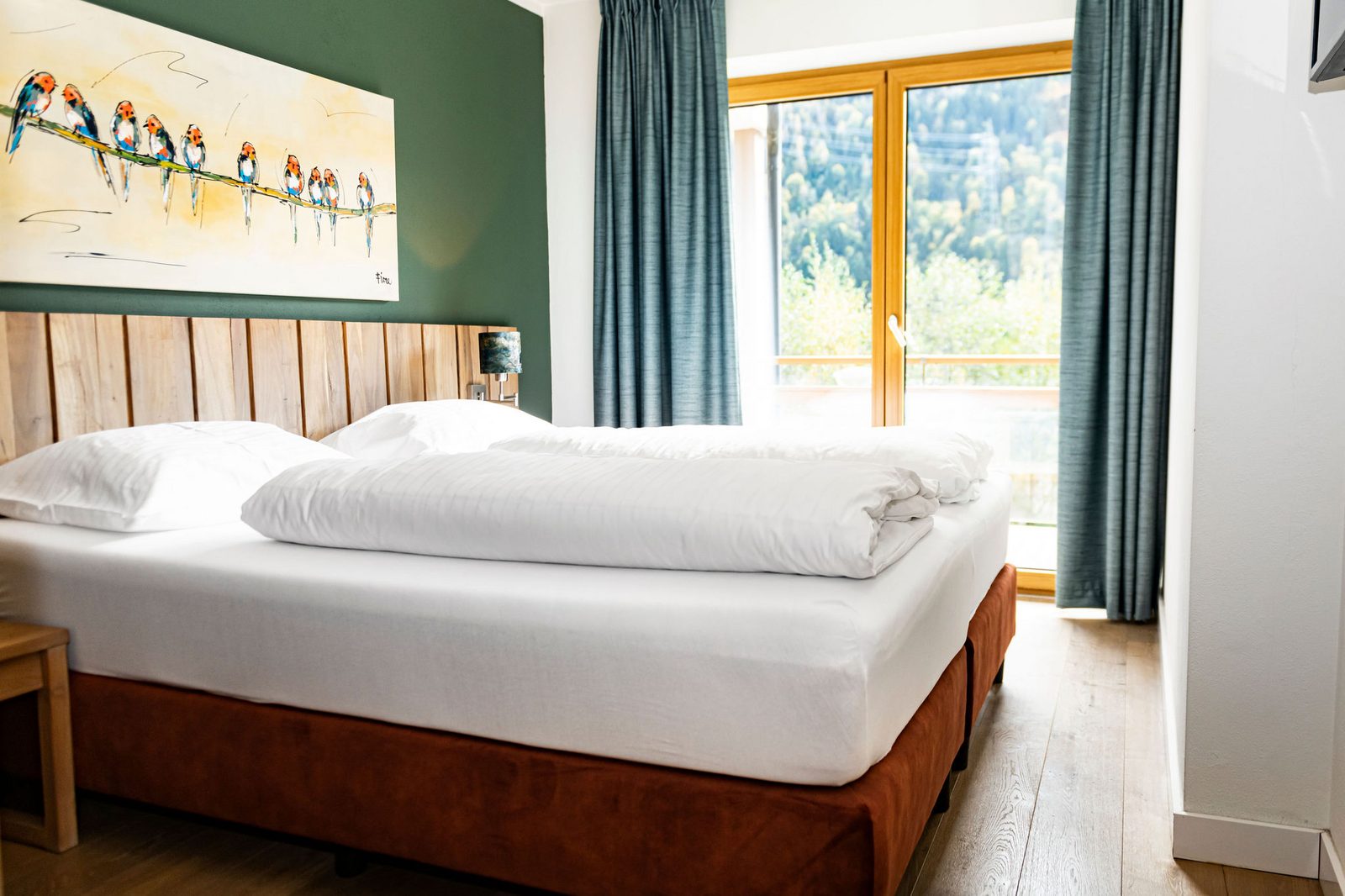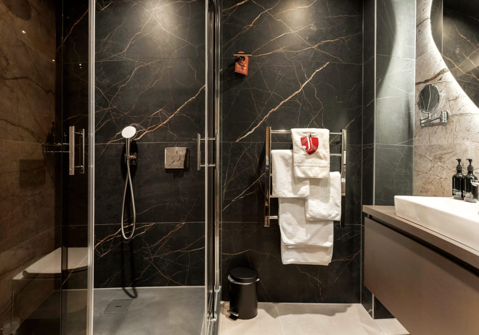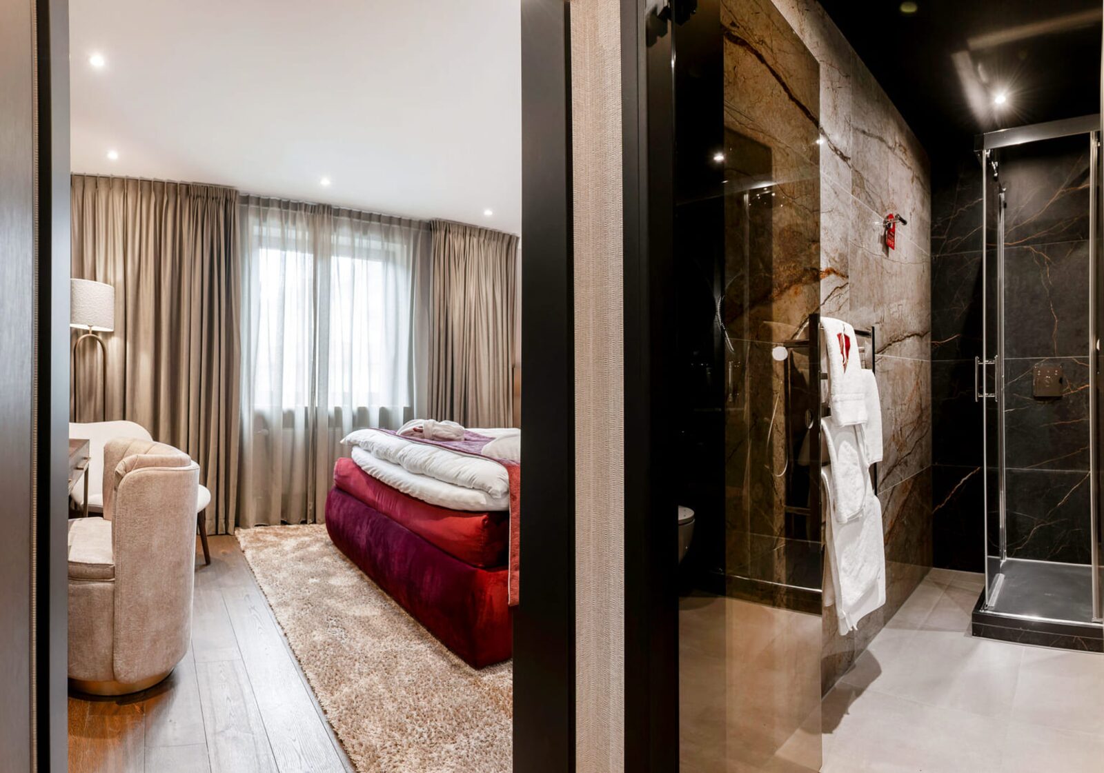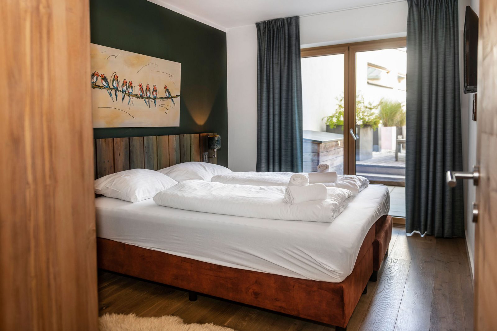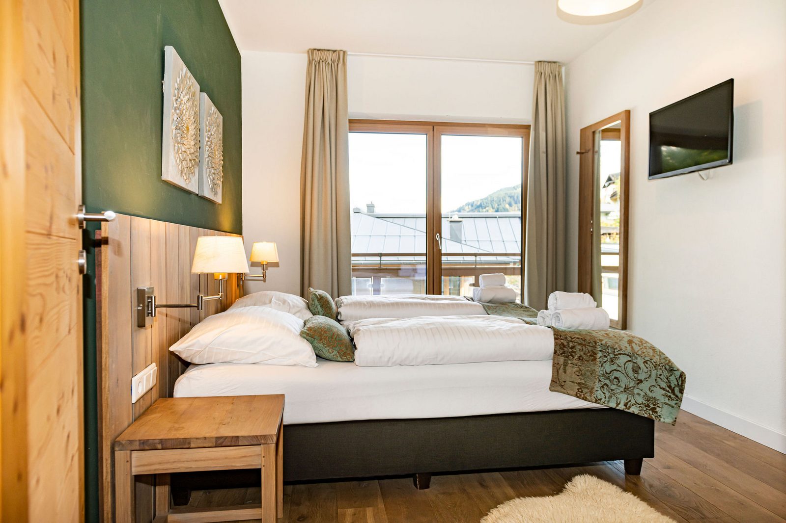 The hotel features modern rooms and luxury suites with king-size beds, smart TVs, Nespresso machines, and spacious bathrooms with walk-in showers. Guests can securely store their ski or cycling equipment in the dedicated storage room and enjoy a central location for both winter slopes and summer outdoor activities. The hotel is adults-only (15+).