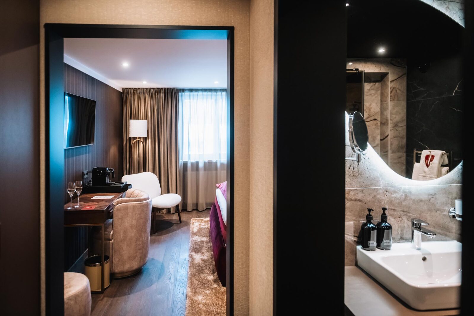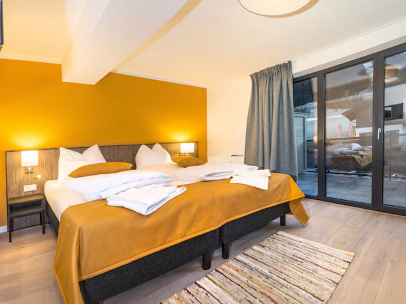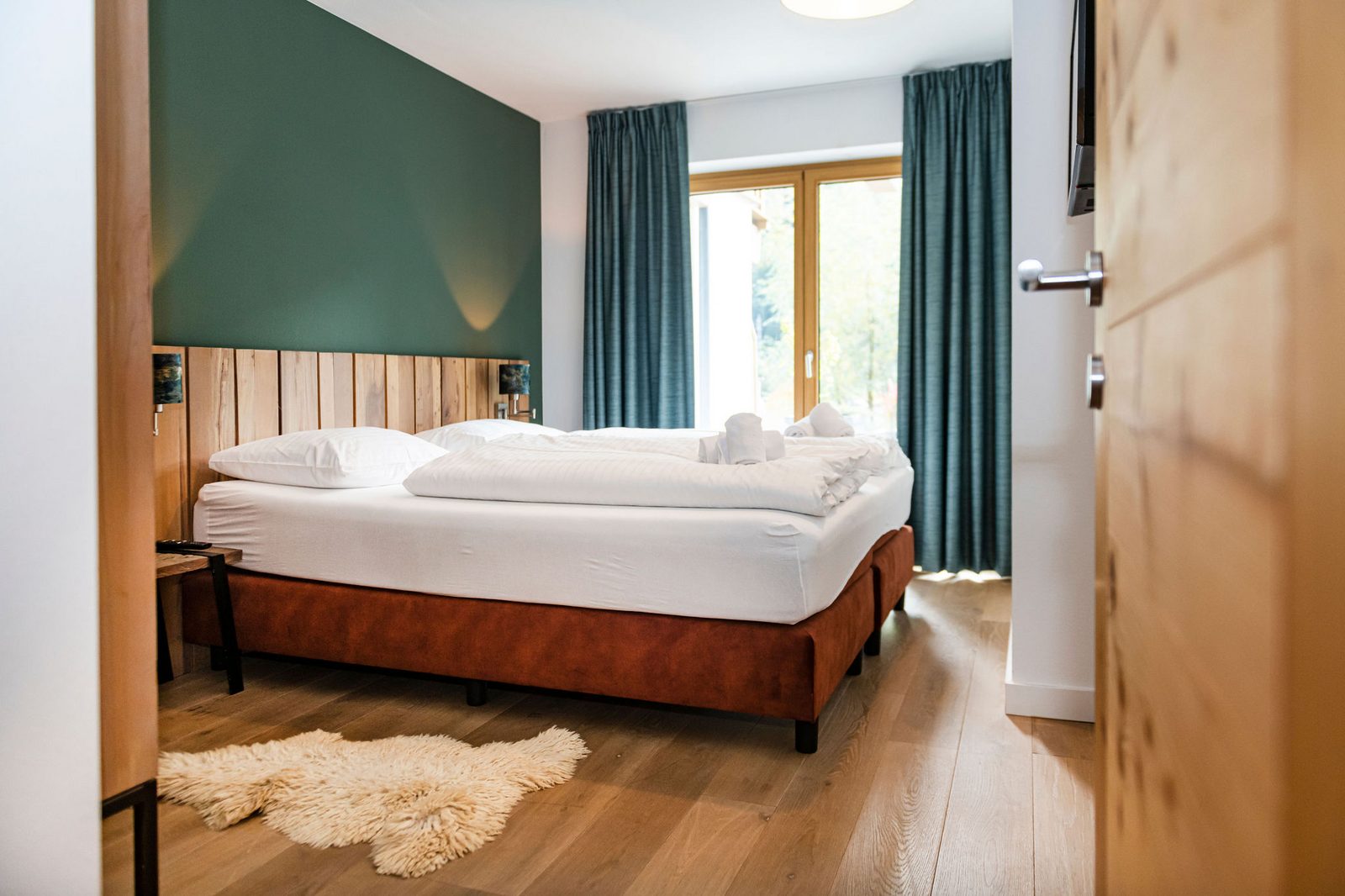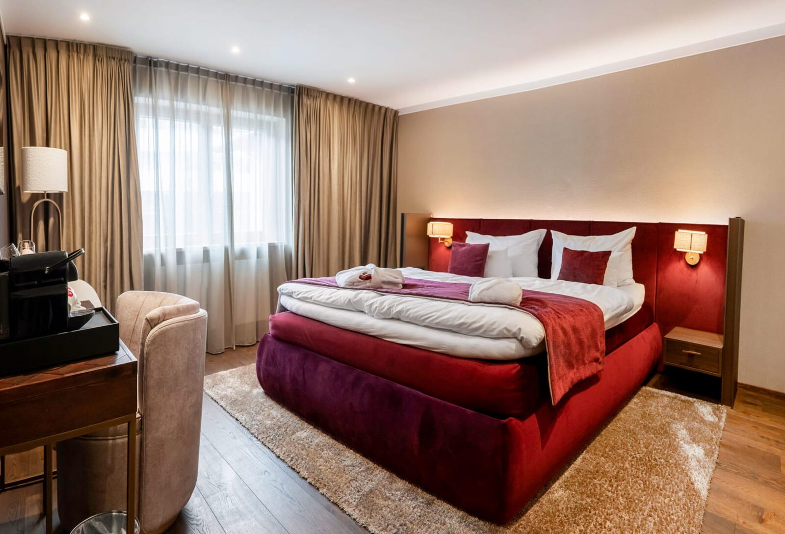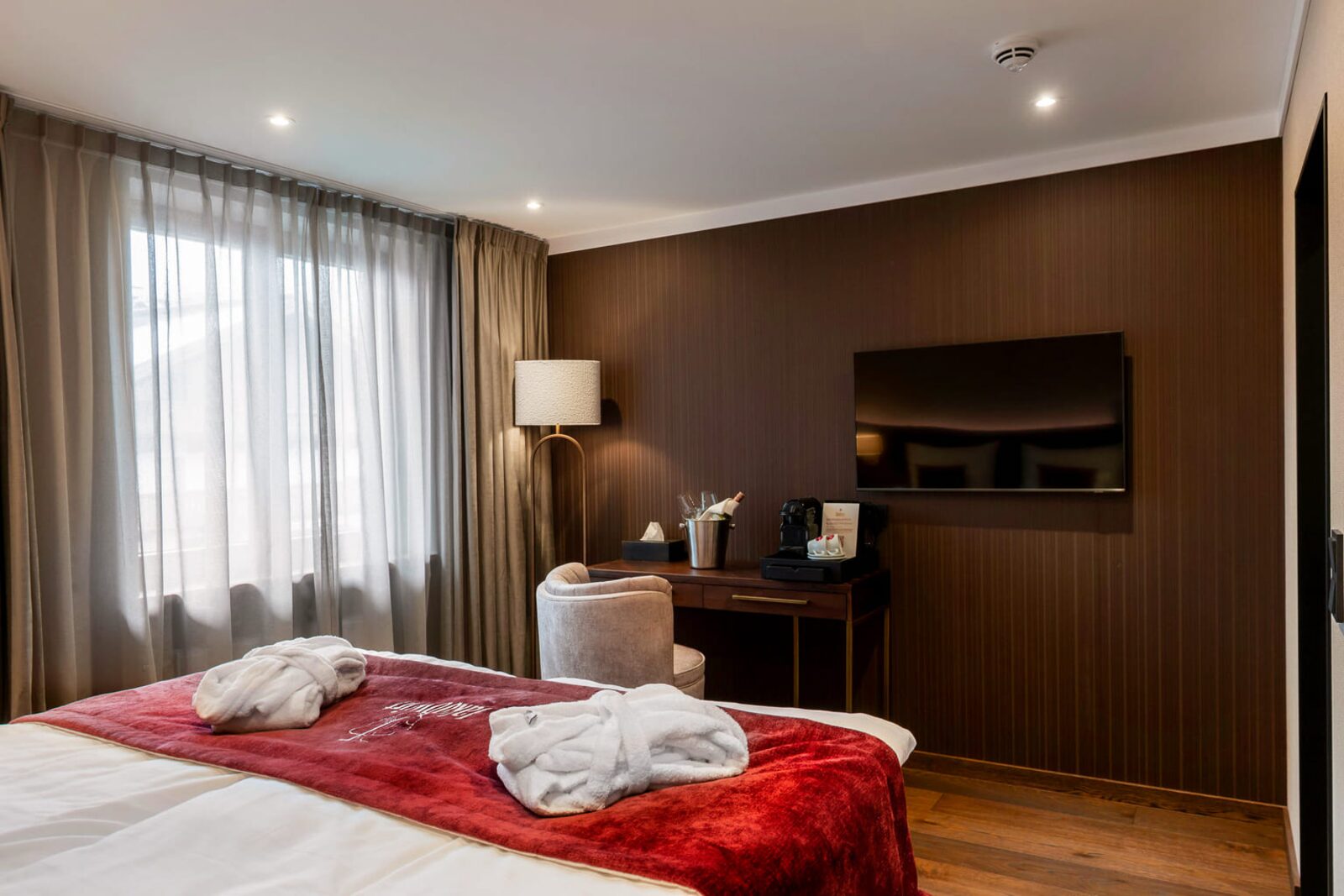 The hotel features modern rooms and luxury suites with king-size beds, smart TVs, Nespresso machines, and spacious bathrooms with walk-in showers. Guests can securely store their ski or cycling equipment in the dedicated storage room and enjoy a central location for both winter slopes and summer outdoor activities. The hotel is adults-only (15+).