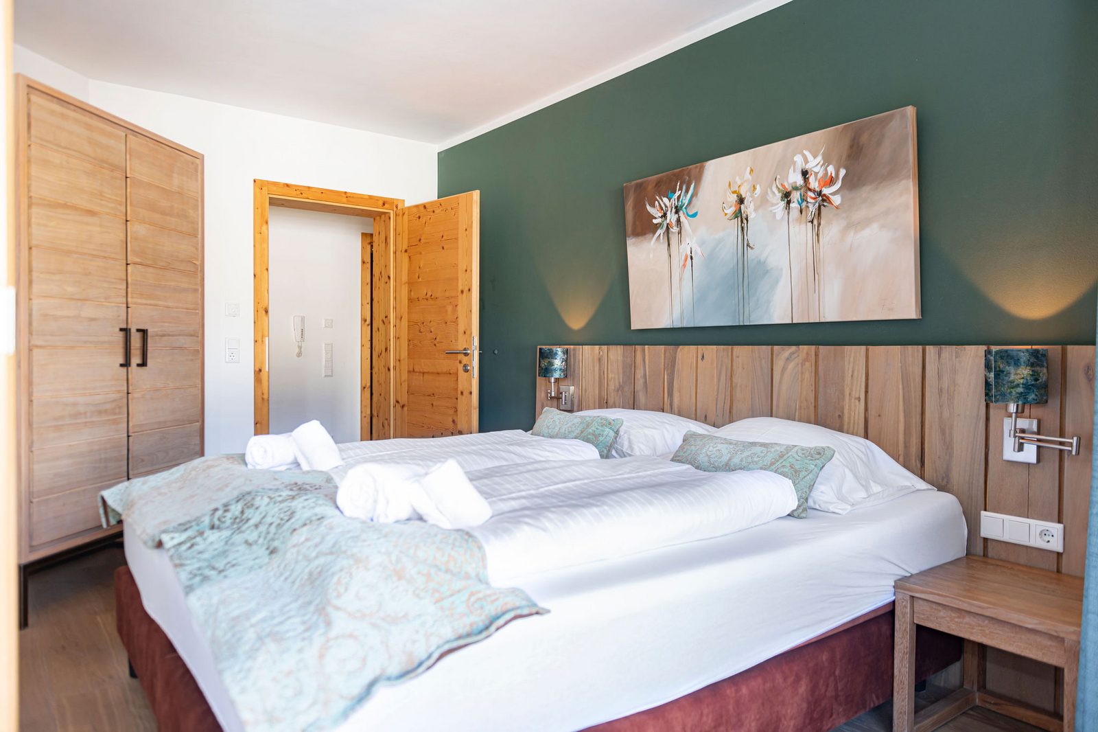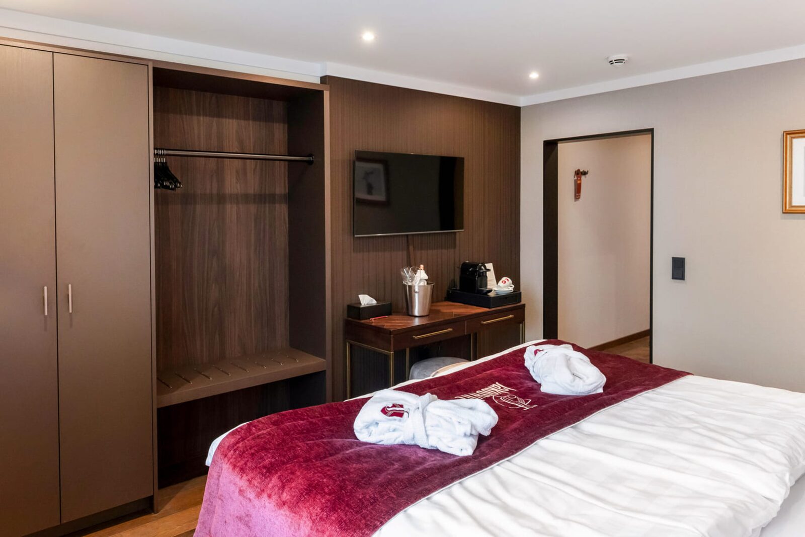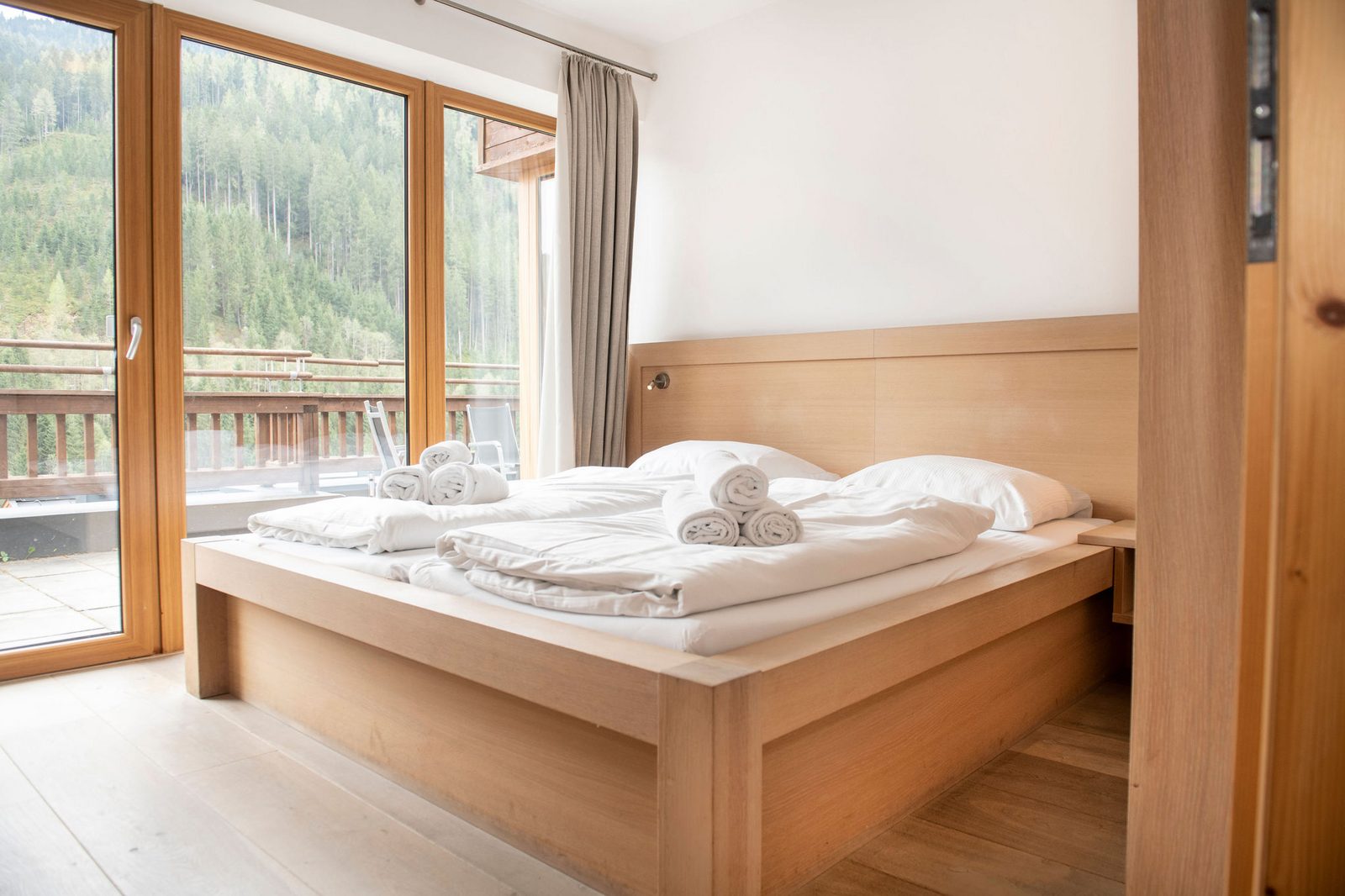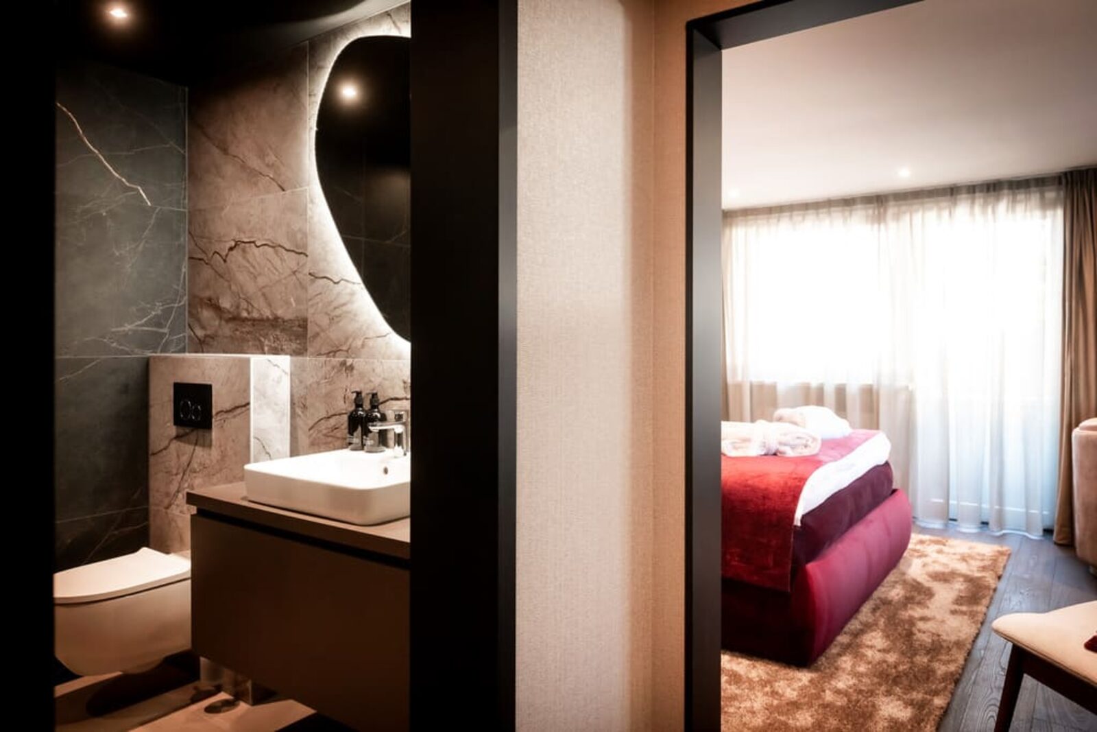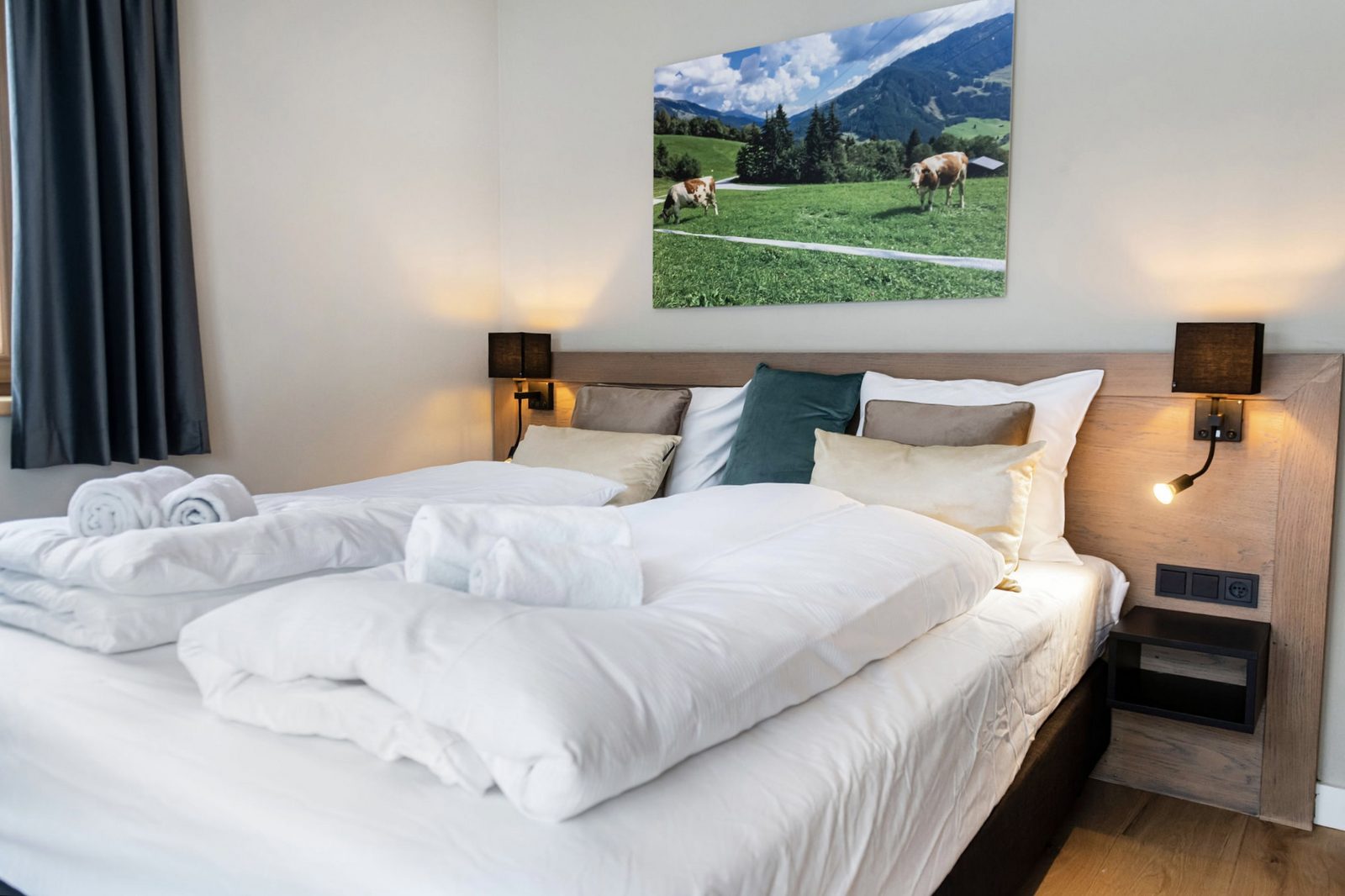 The hotel features modern rooms and luxury suites with king-size beds, smart TVs, Nespresso machines, and spacious bathrooms with walk-in showers. Guests can securely store their ski or cycling equipment in the dedicated storage room and enjoy a central location for both winter slopes and summer outdoor activities. The hotel is adults-only (15+).