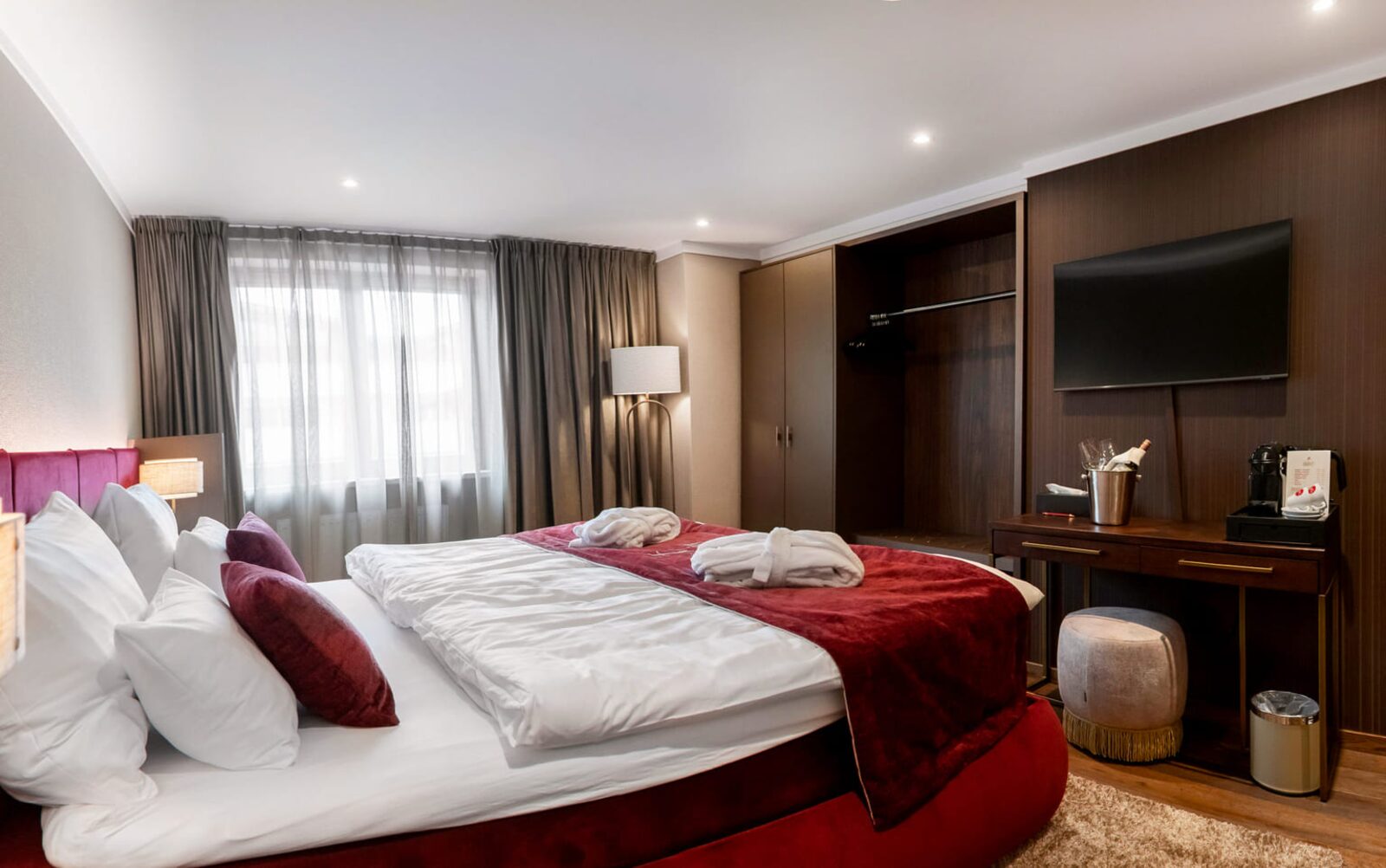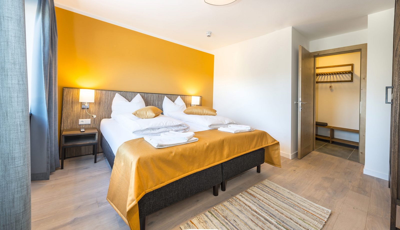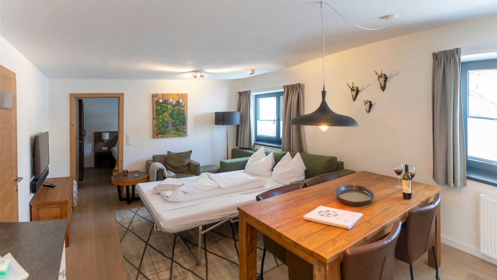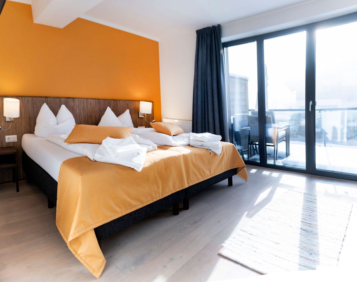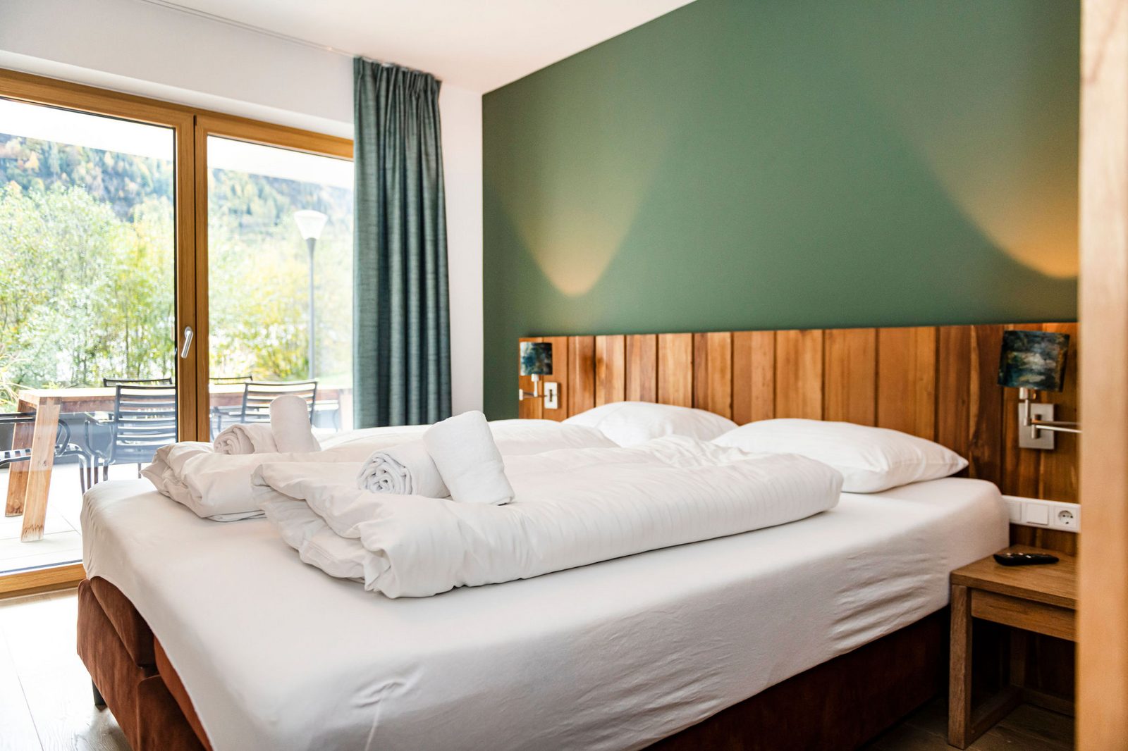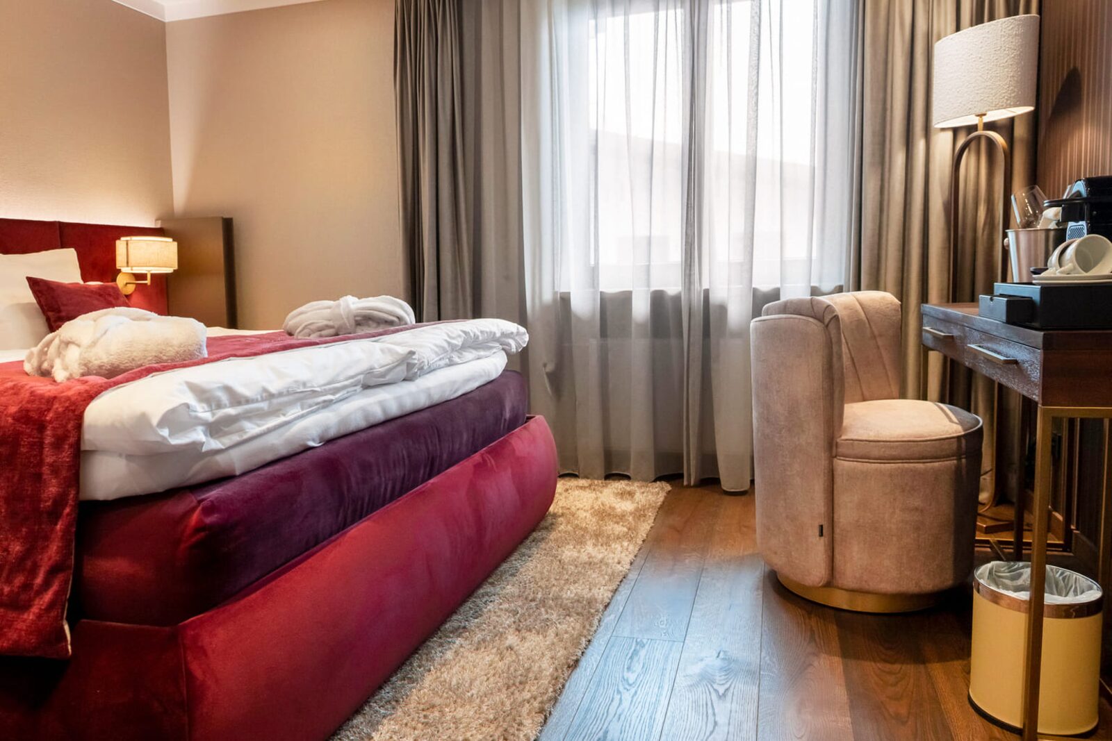 The hotel features modern rooms and luxury suites with king-size beds, smart TVs, Nespresso machines, and spacious bathrooms with walk-in showers. Guests can securely store their ski or cycling equipment in the dedicated storage room and enjoy a central location for both winter slopes and summer outdoor activities. The hotel is adults-only (15+).