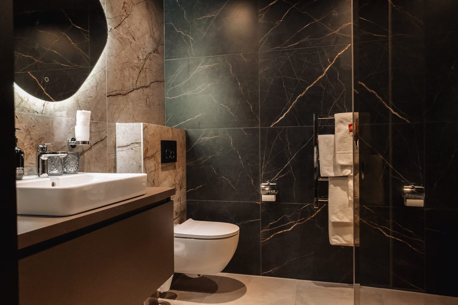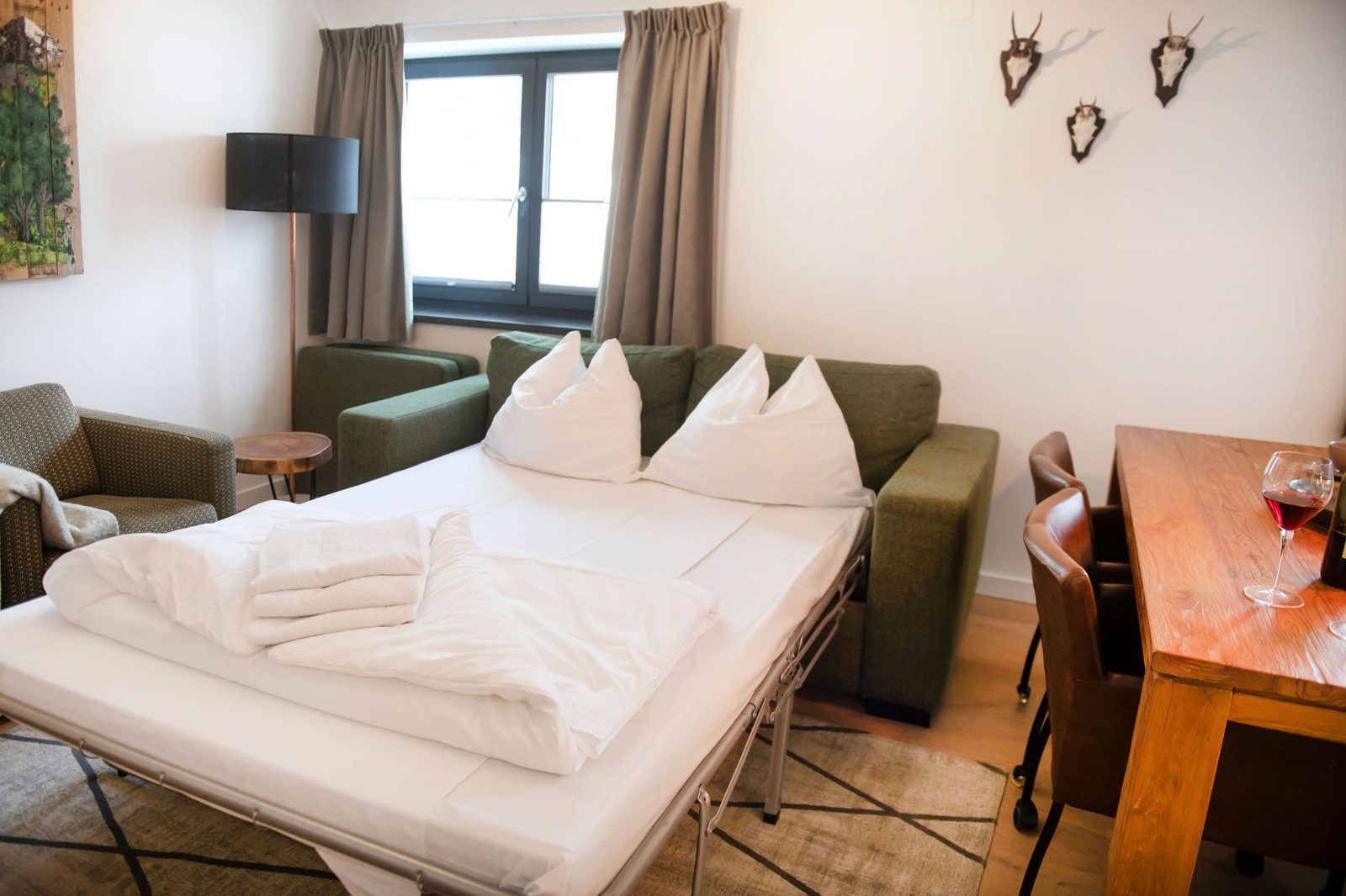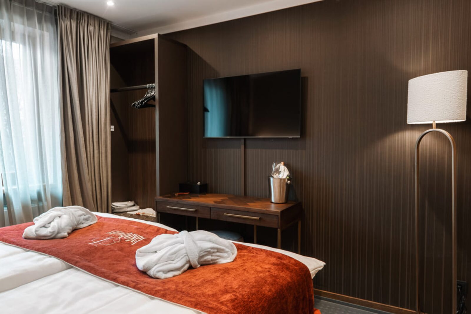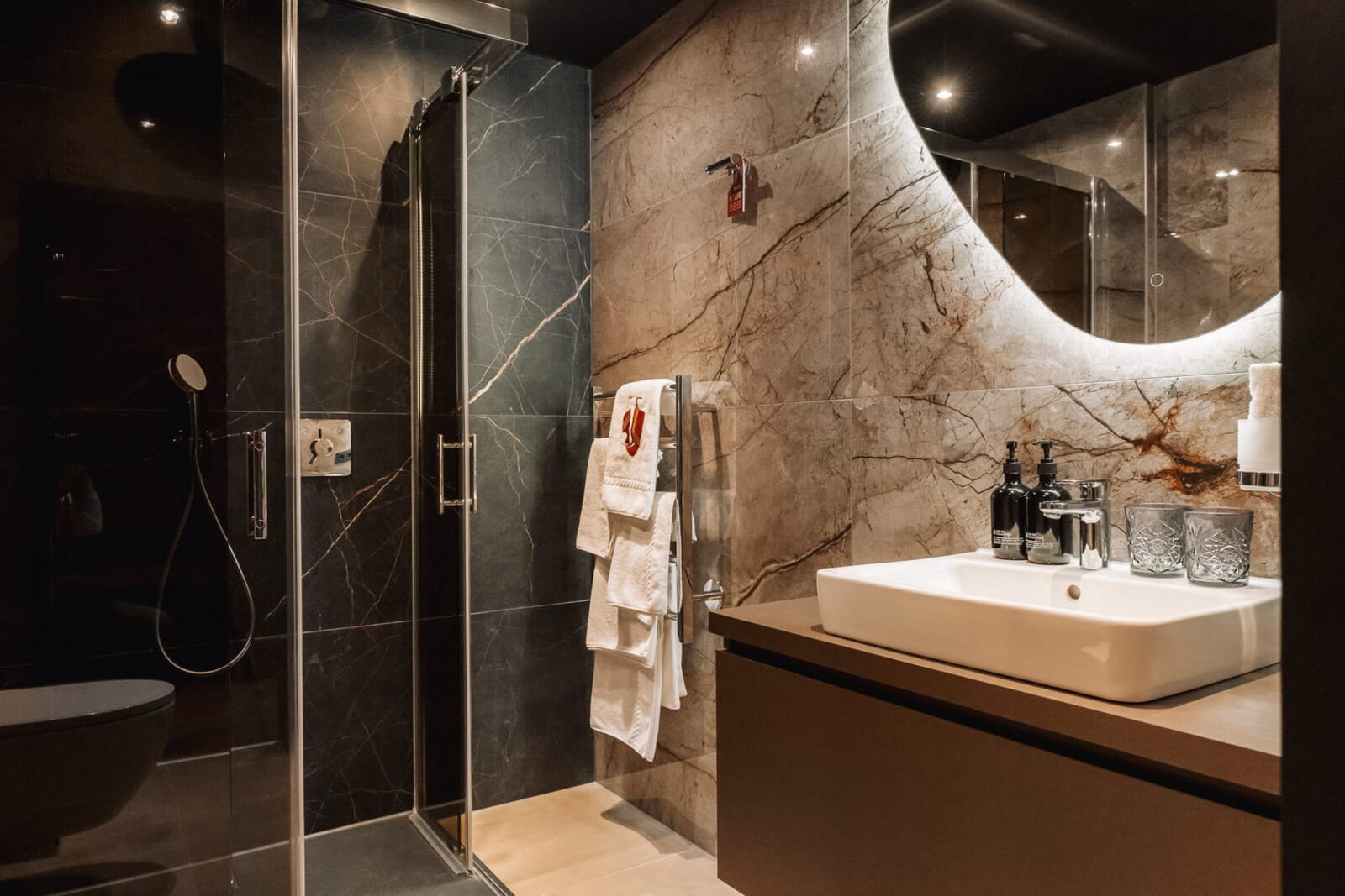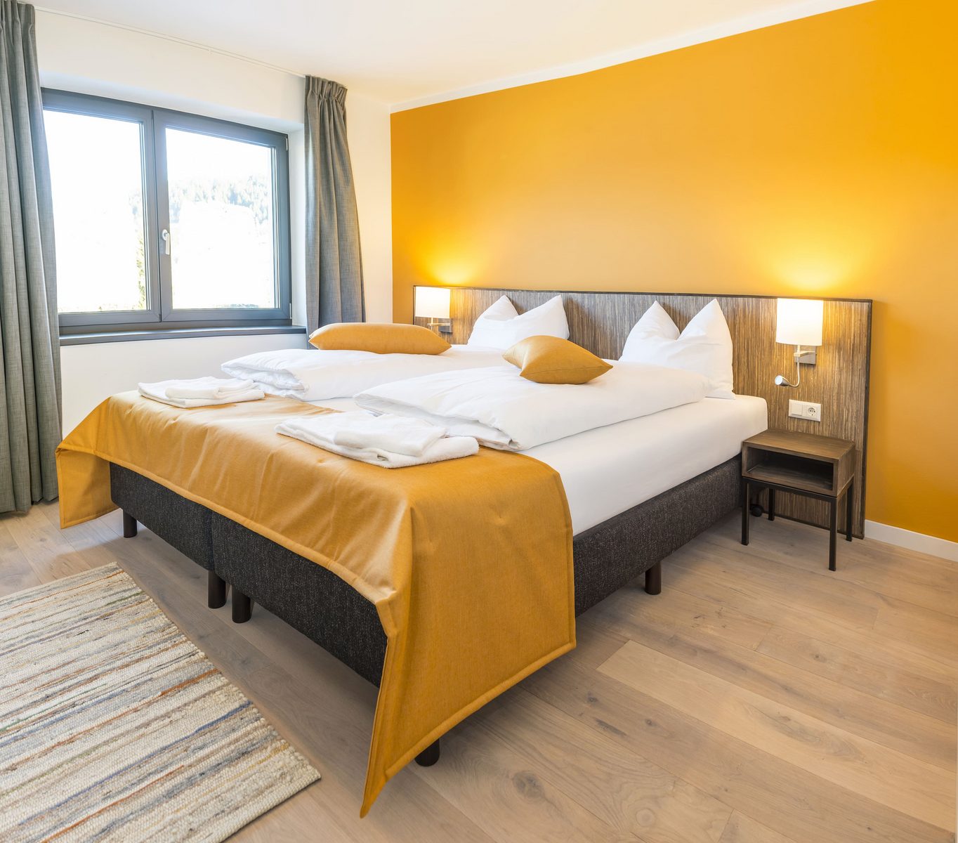 The hotel features modern rooms and luxury suites with king-size beds, smart TVs, Nespresso machines, and spacious bathrooms with walk-in showers. Guests can securely store their ski or cycling equipment in the dedicated storage room and enjoy a central location for both winter slopes and summer outdoor activities. The hotel is adults-only (15+).