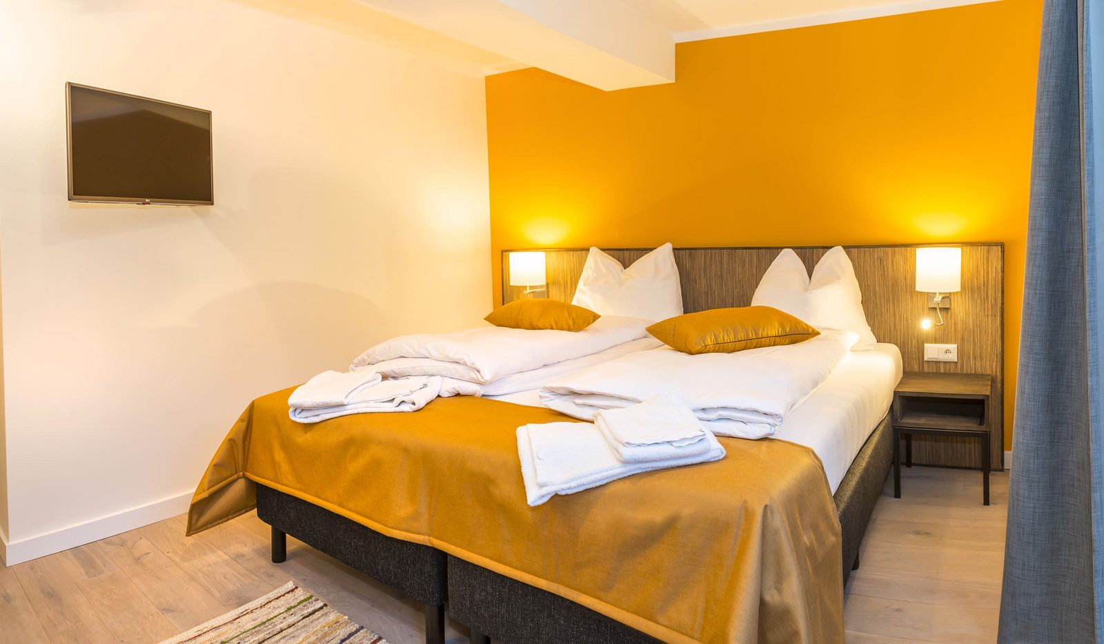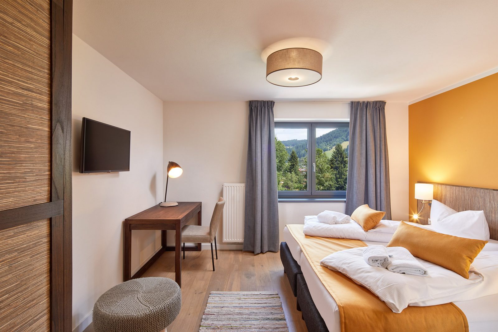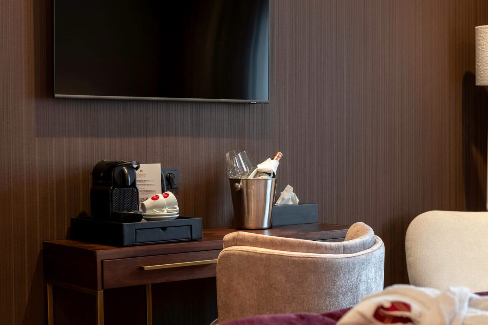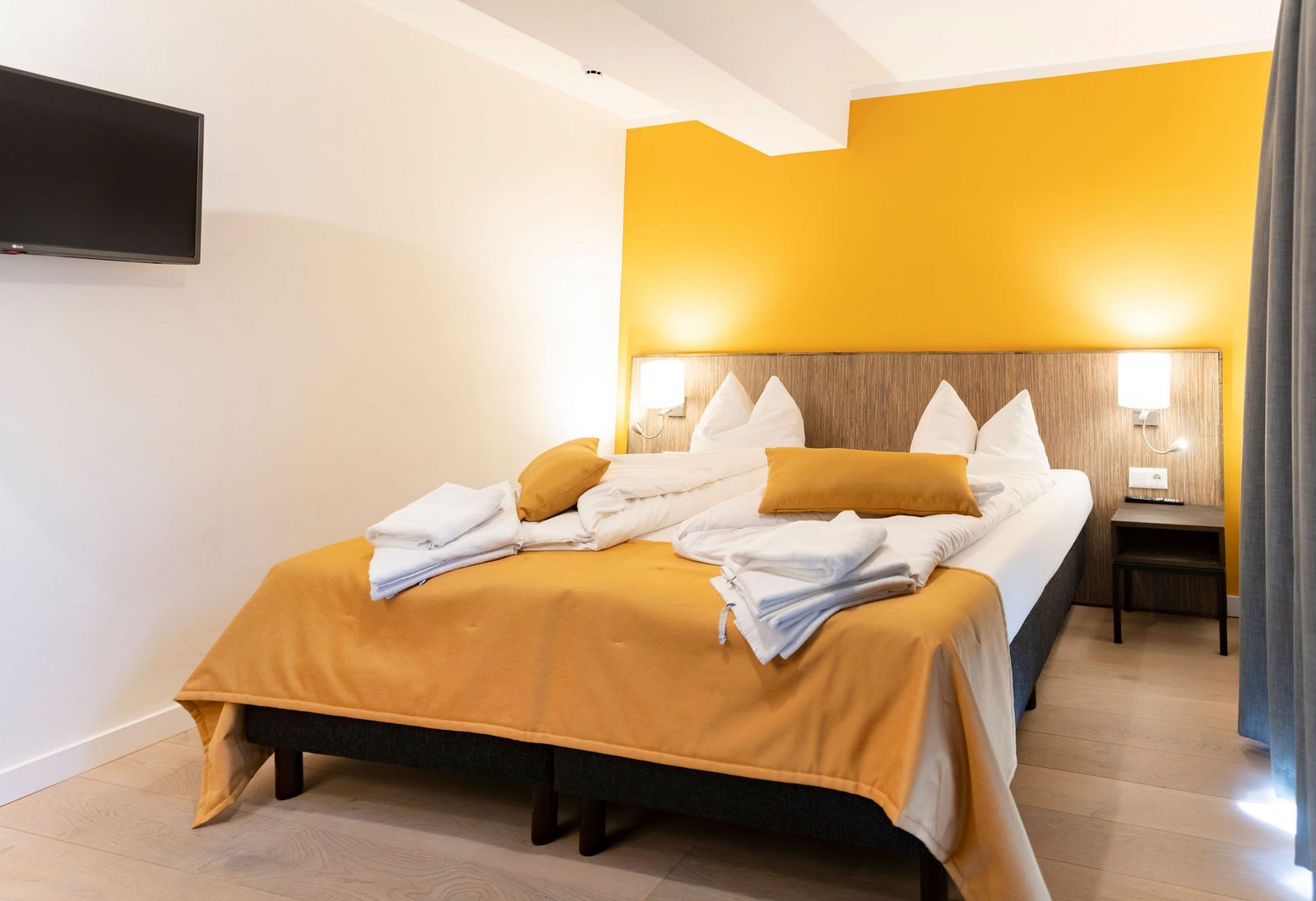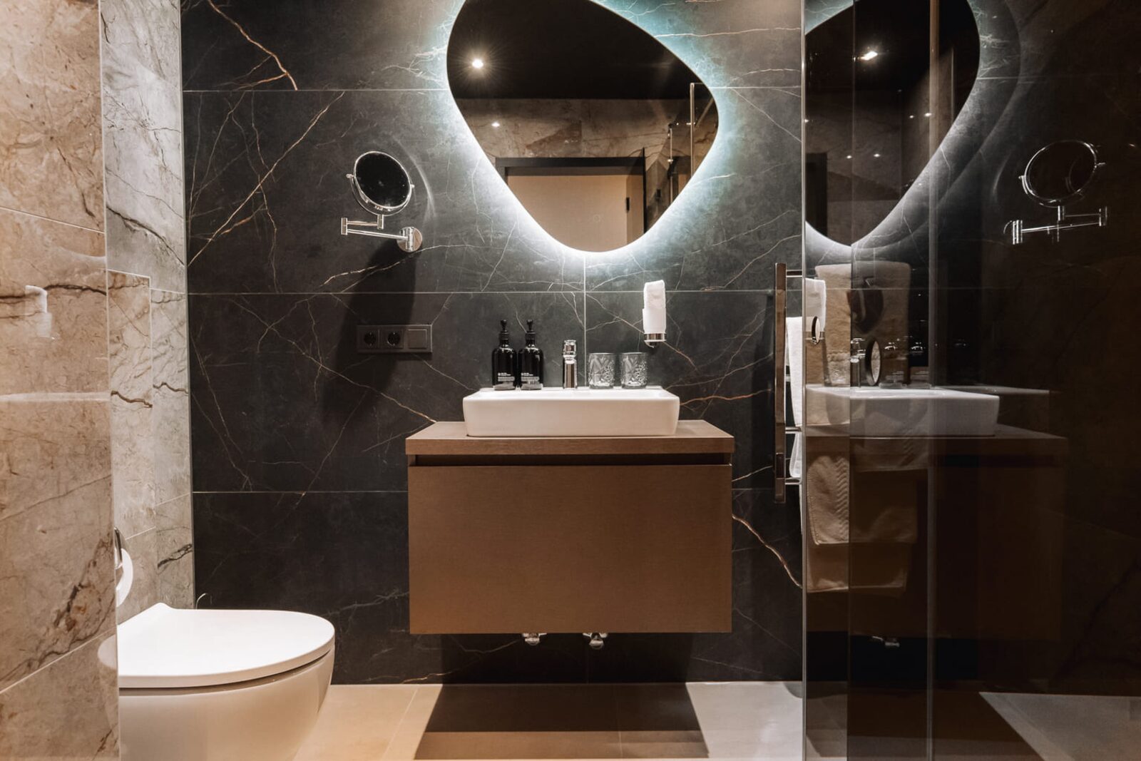 The hotel features modern rooms and luxury suites with king-size beds, smart TVs, Nespresso machines, and spacious bathrooms with walk-in showers. Guests can securely store their ski or cycling equipment in the dedicated storage room and enjoy a central location for both winter slopes and summer outdoor activities. The hotel is adults-only (15+).