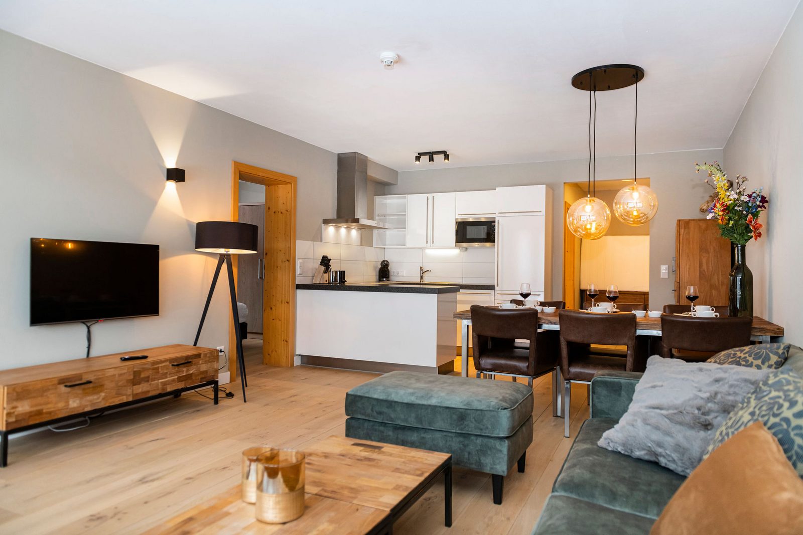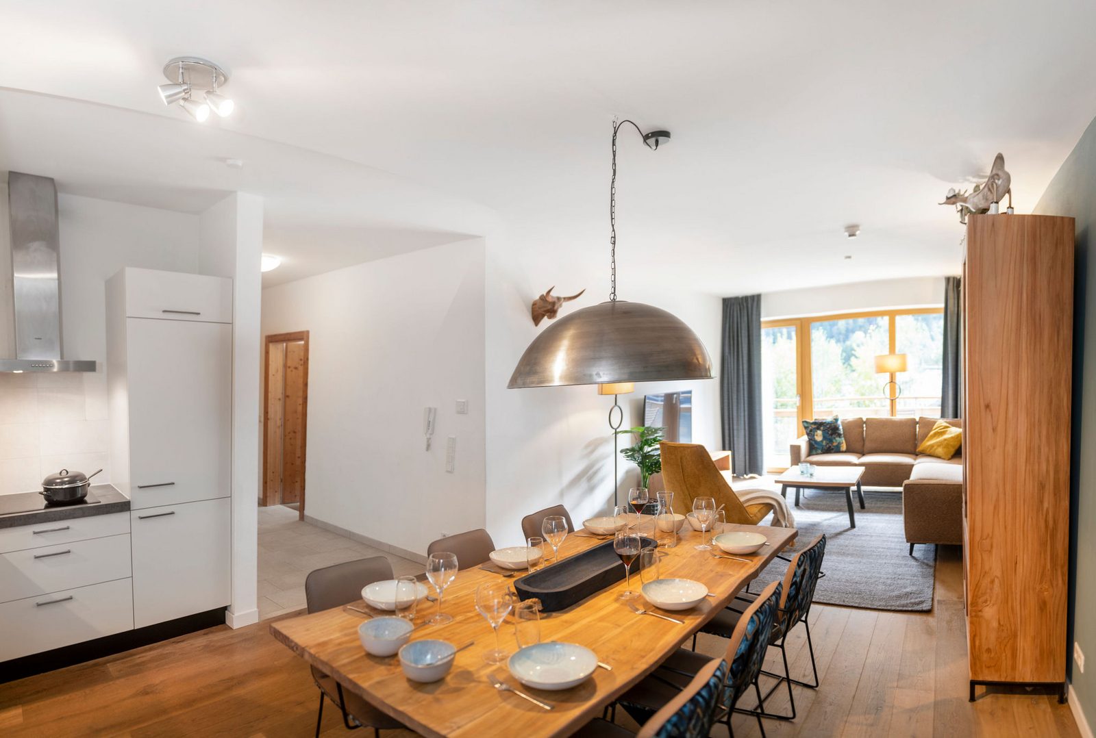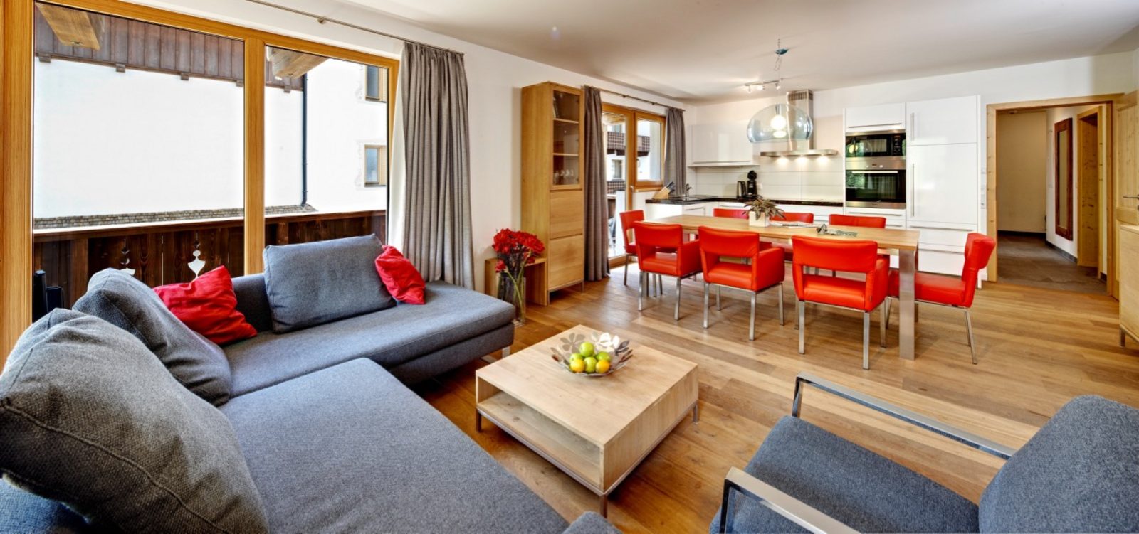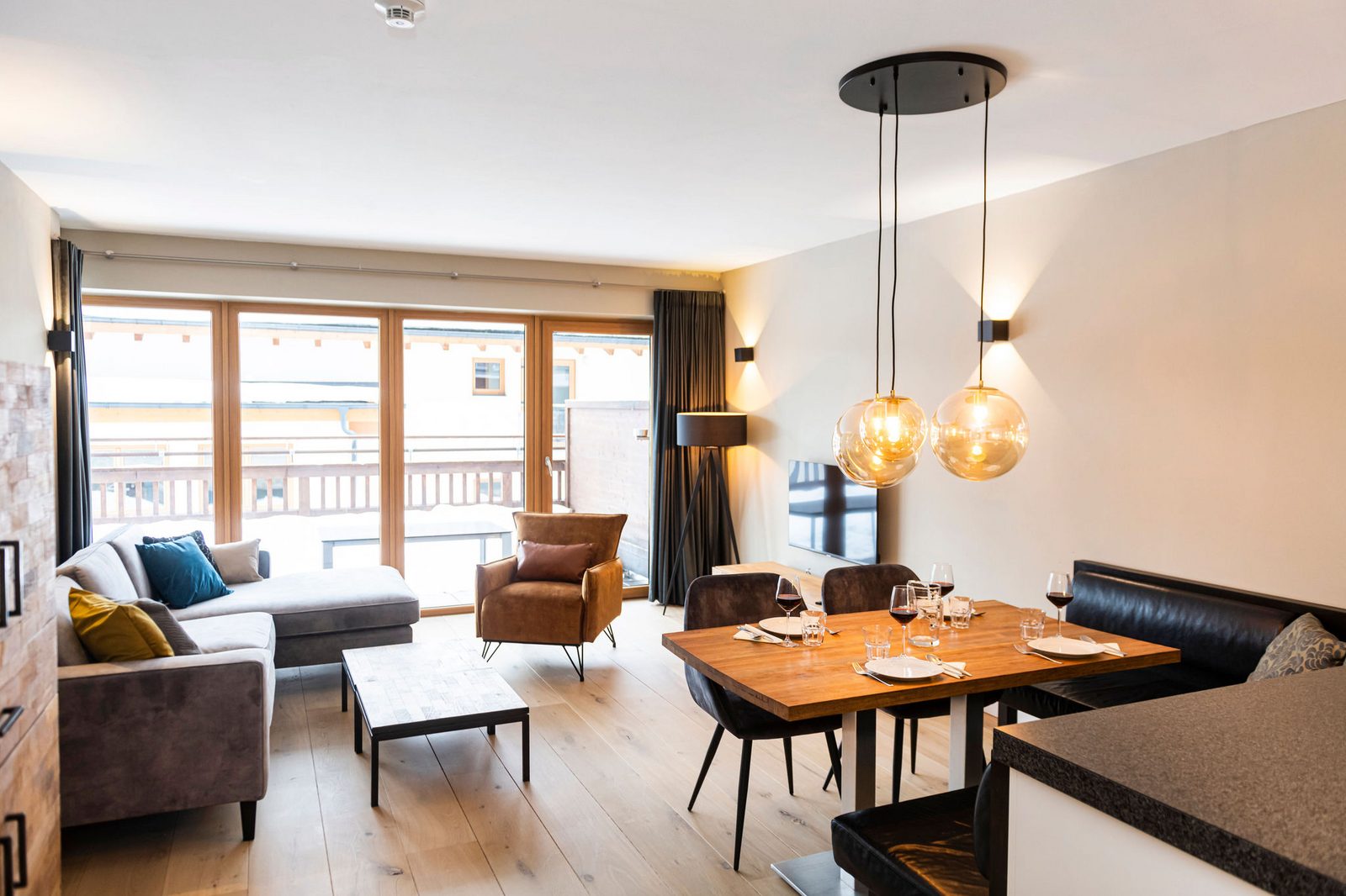 Kaprun Glacier Estate offers 8 luxury apartments and 3 spacious penthouses, accommodating 4 to 14 guests. Each residence is designed for maximum comfort, featuring Tieleman designer kitchens, stylish bathrooms, and cozy living spaces. Guests can unwind in the shared sauna after a day on the slopes or enjoying outdoor activities in the mountains, while the central location provides easy access to the Maiskogelbahn, nearby hiking and skiing trails, the Tauern Spa, and the stunning Zell am See lake, all year round.
