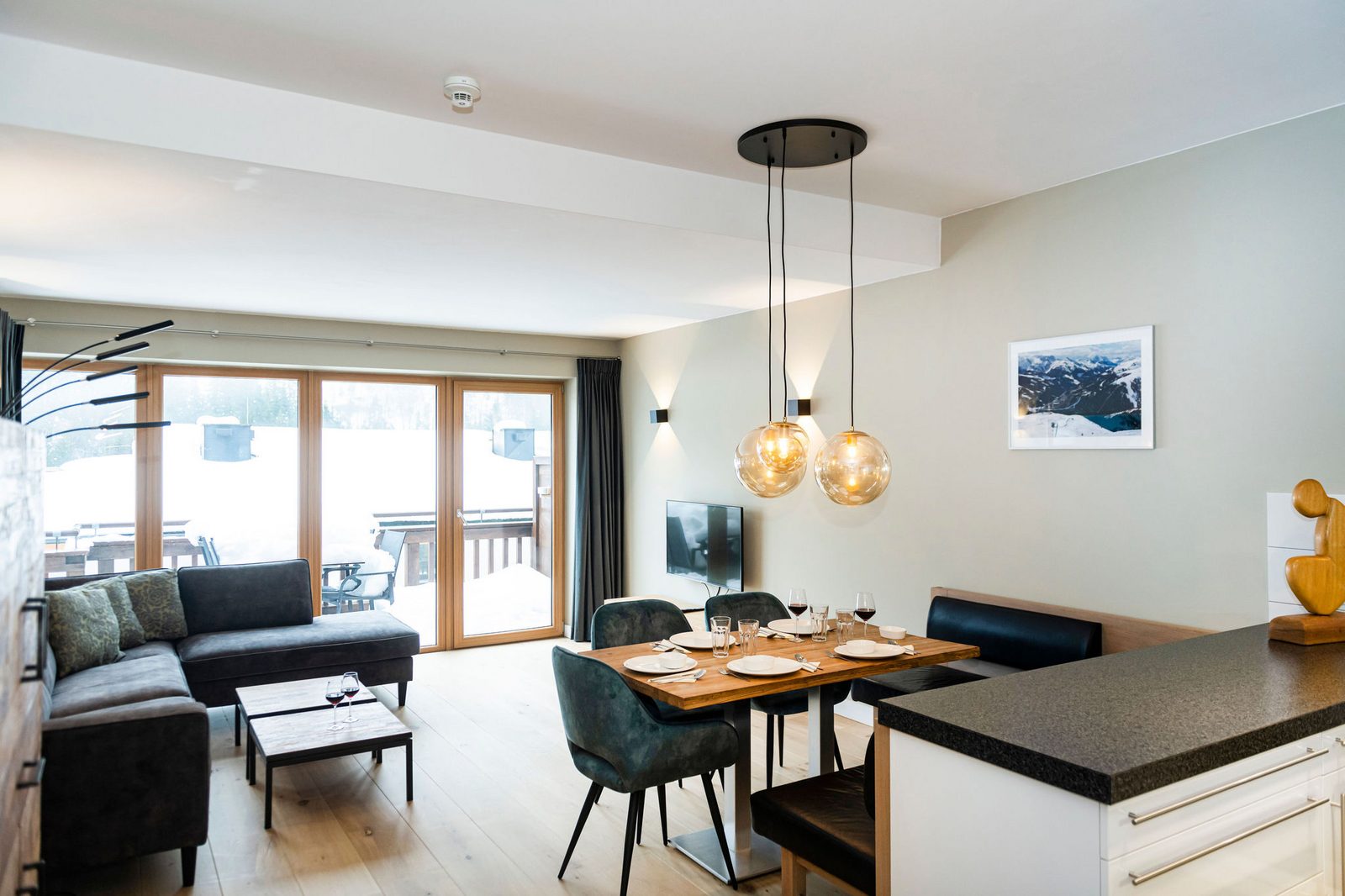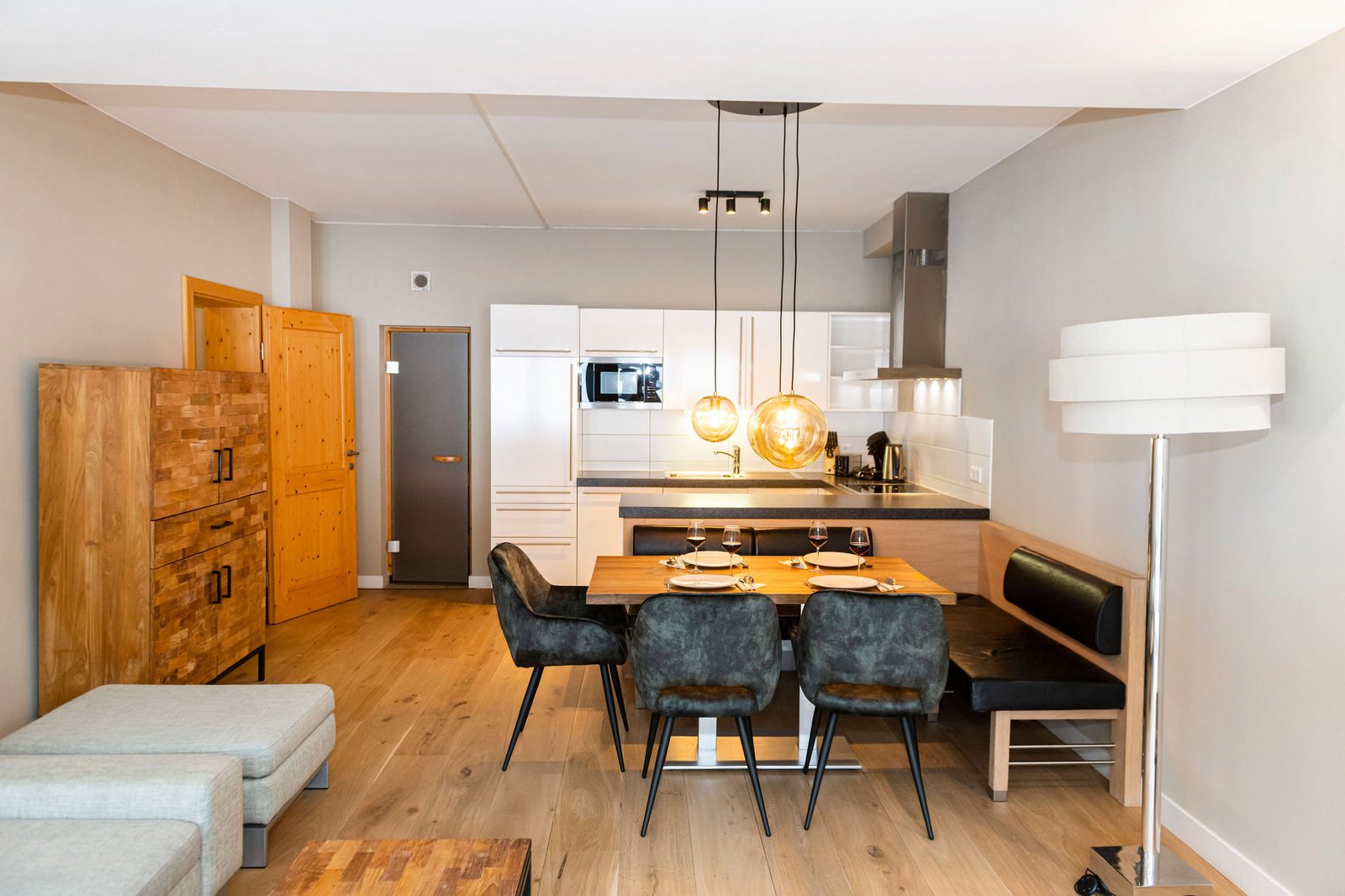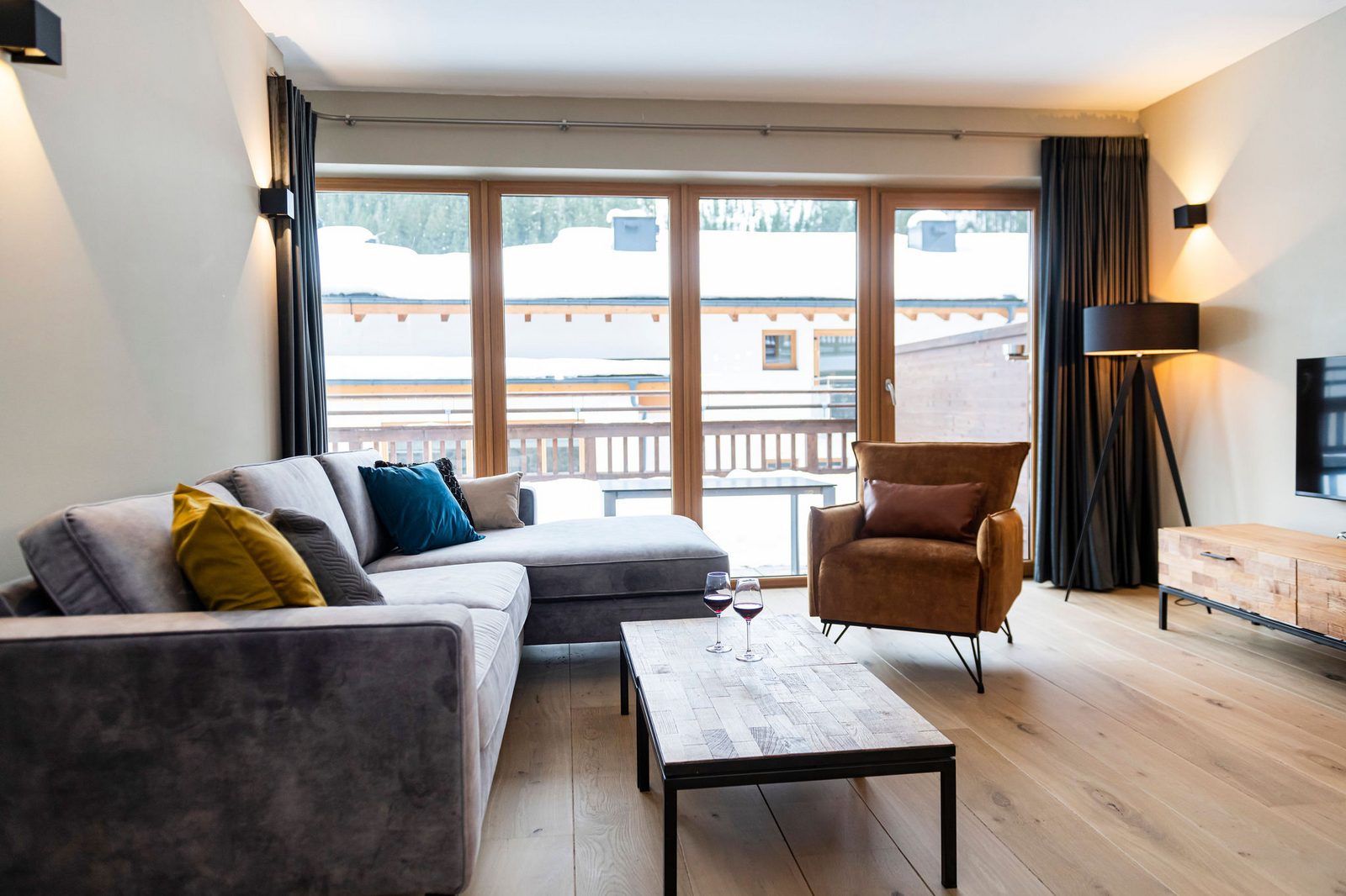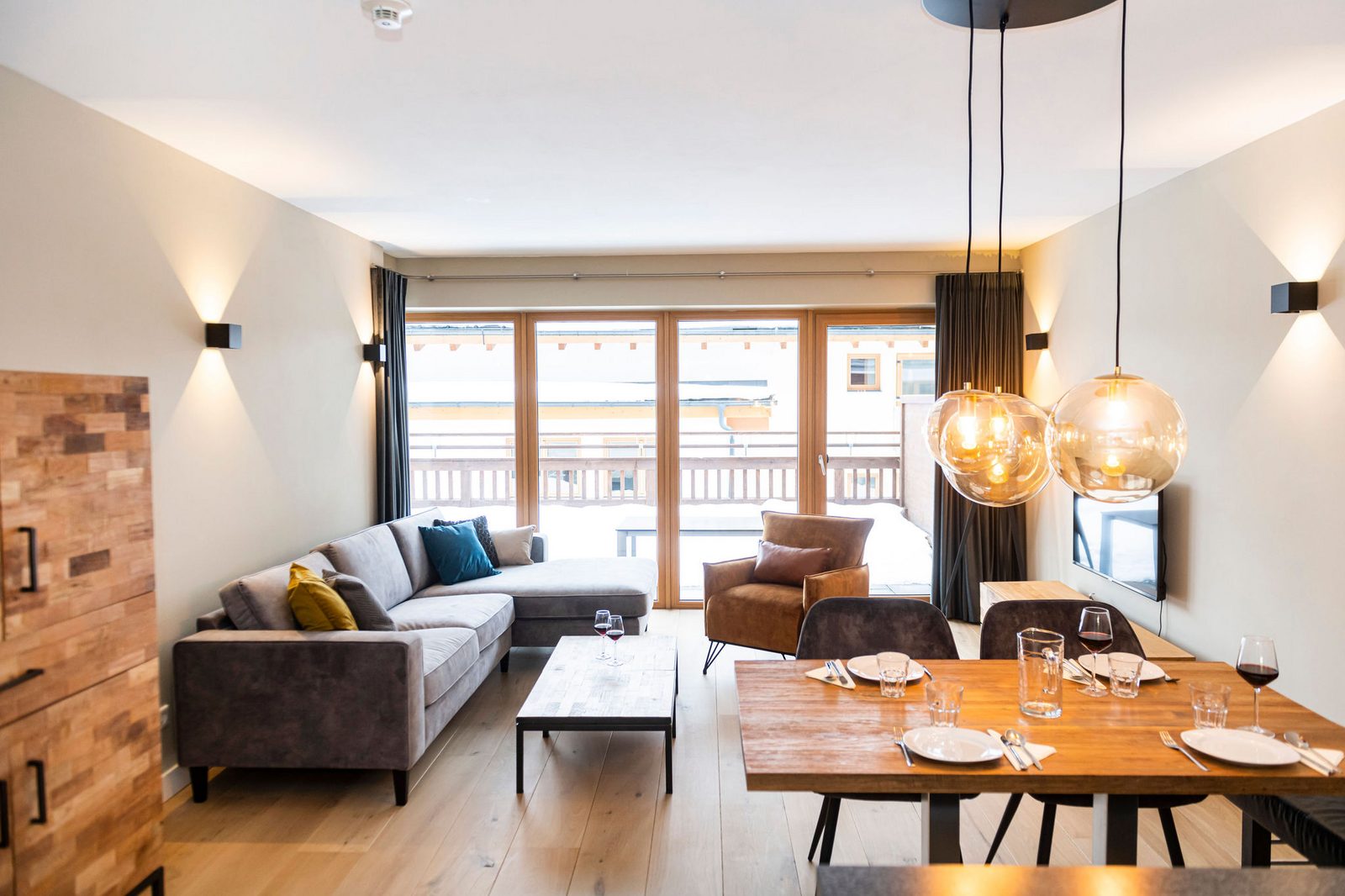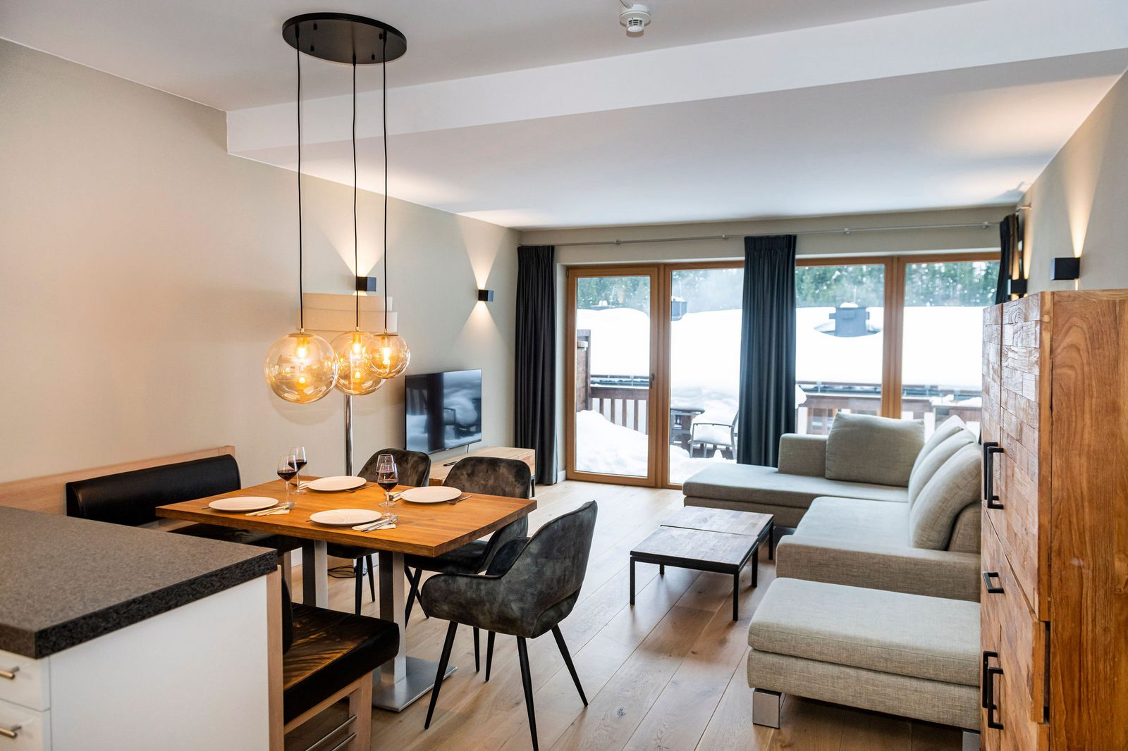 Kaprun Glacier Estate offers 8 luxury apartments and 3 spacious penthouses, accommodating 4 to 14 guests. Each residence is designed for maximum comfort, featuring Tieleman designer kitchens, stylish bathrooms, and cozy living spaces. Guests can unwind in the shared sauna after a day on the slopes or enjoying outdoor activities in the mountains, while the central location provides easy access to the Maiskogelbahn, nearby hiking and skiing trails, the Tauern Spa, and the stunning Zell am See lake, all year round.