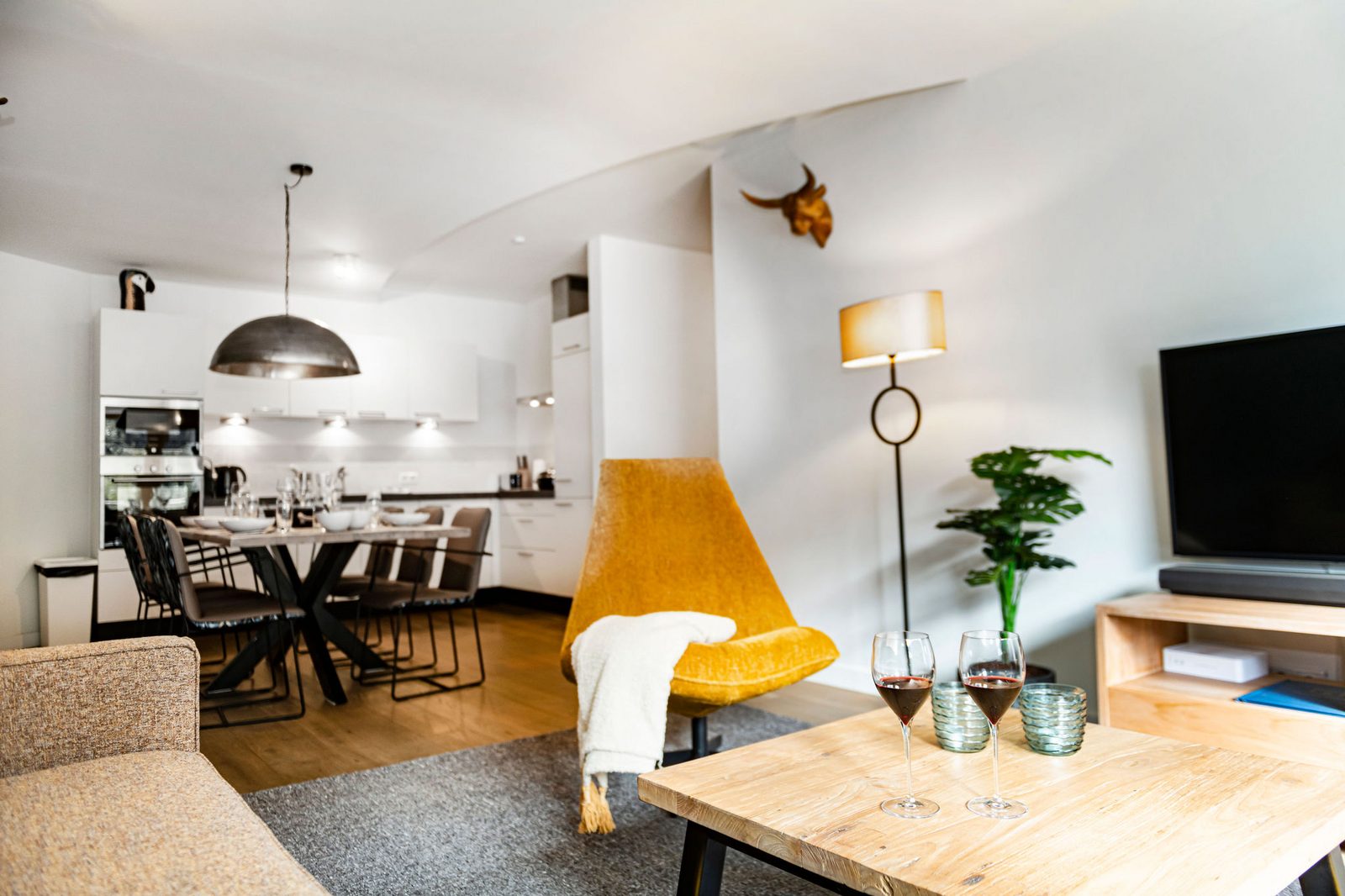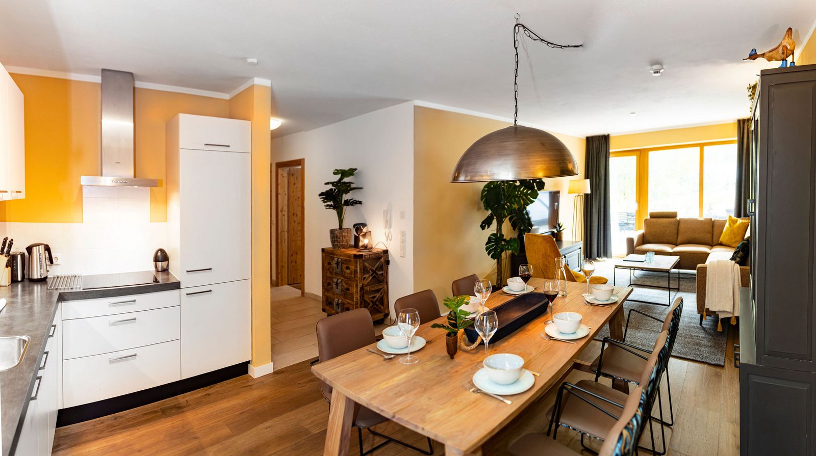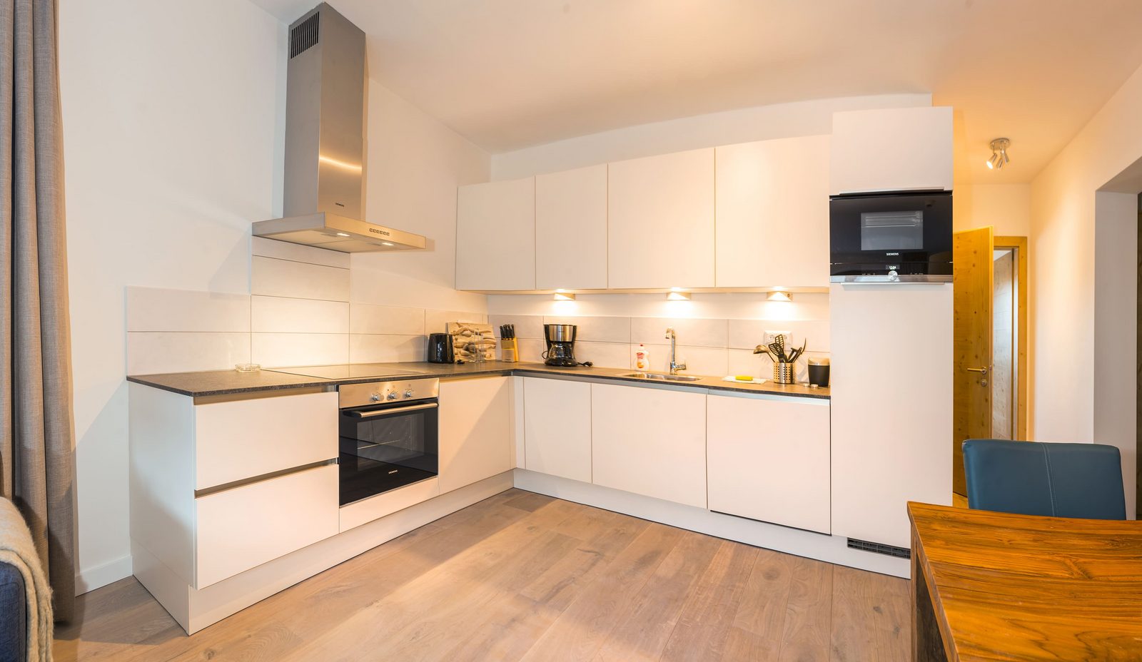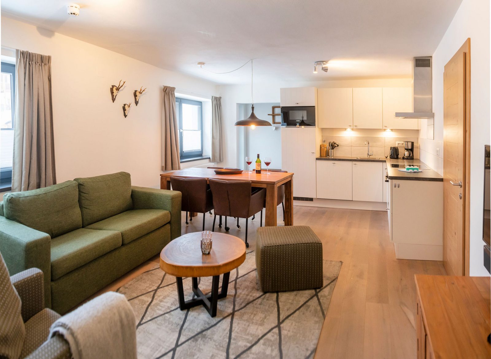Kaprun Glacier Estate offers 8 luxury apartments and 3 spacious penthouses, accommodating 4 to 14 guests. Each residence is designed for maximum comfort, featuring Tieleman designer kitchens, stylish bathrooms, and cozy living spaces. Guests can unwind in the shared sauna after a day on the slopes or enjoying outdoor activities in the mountains, while the central location provides easy access to the Maiskogelbahn, nearby hiking and skiing trails, the Tauern Spa, and the stunning Zell am See lake, all year round.