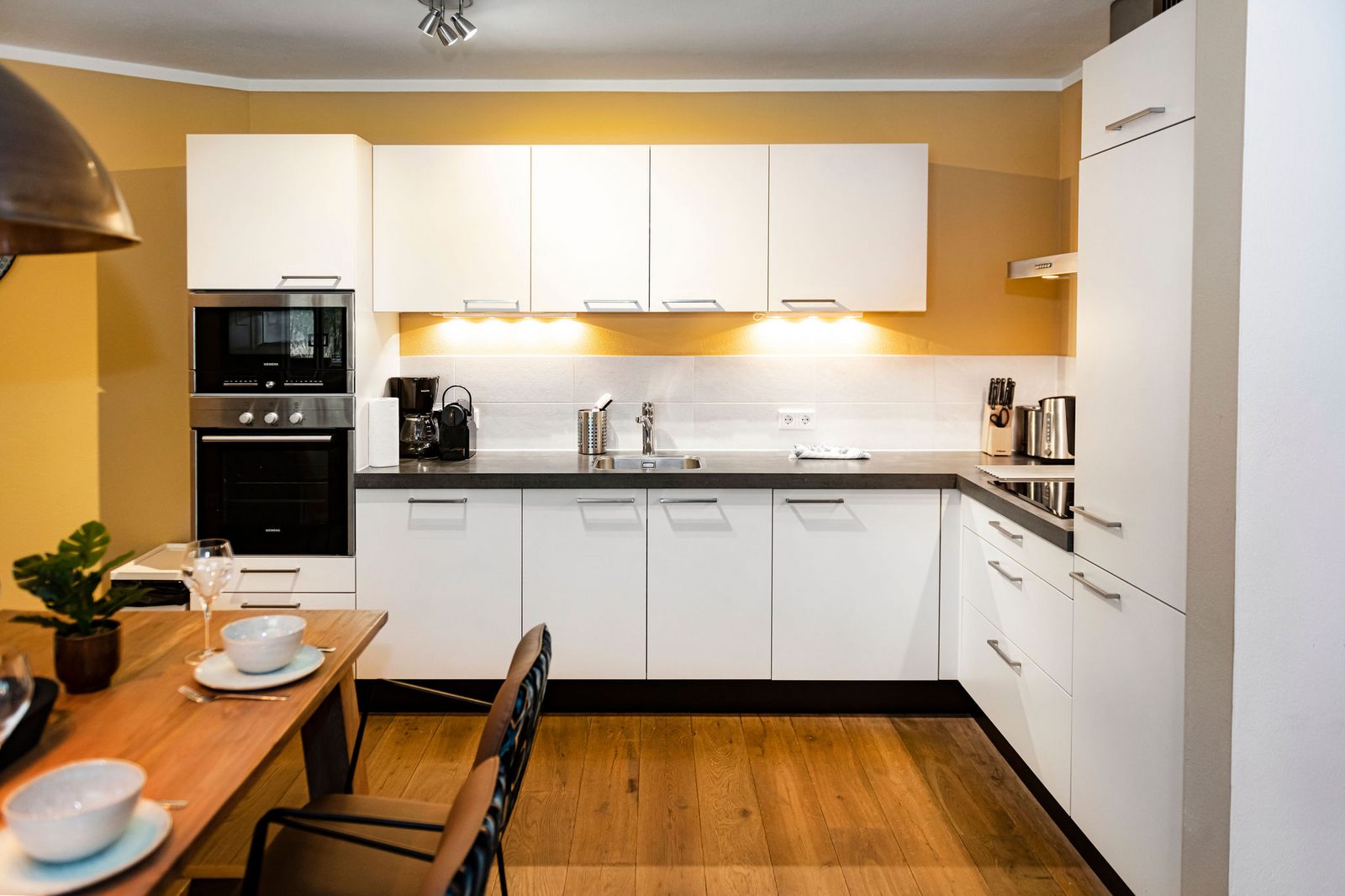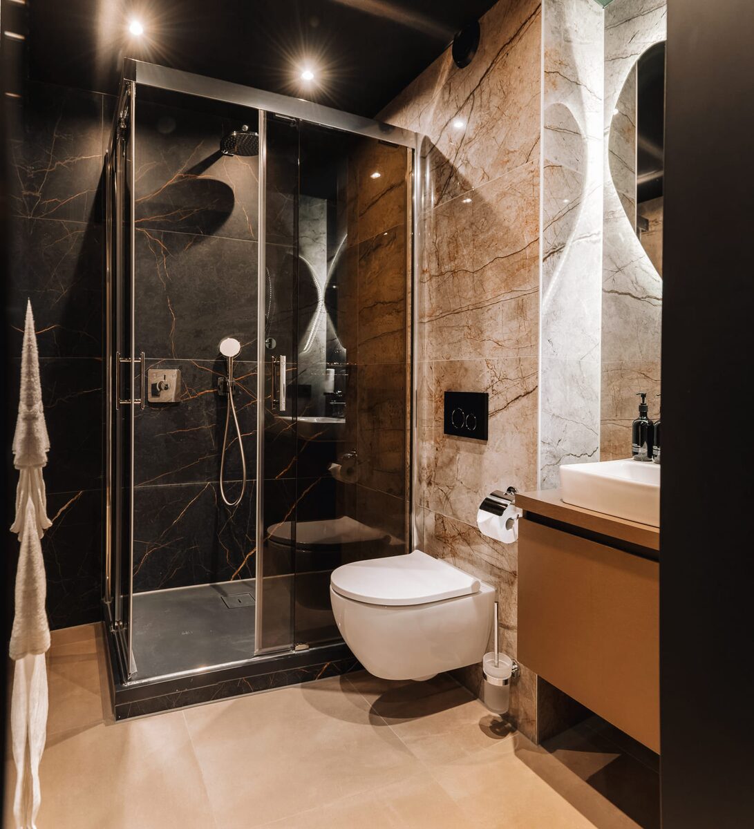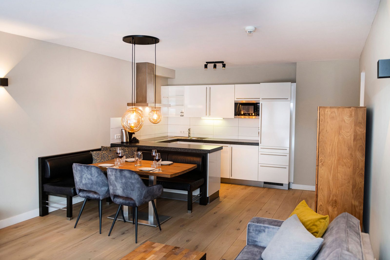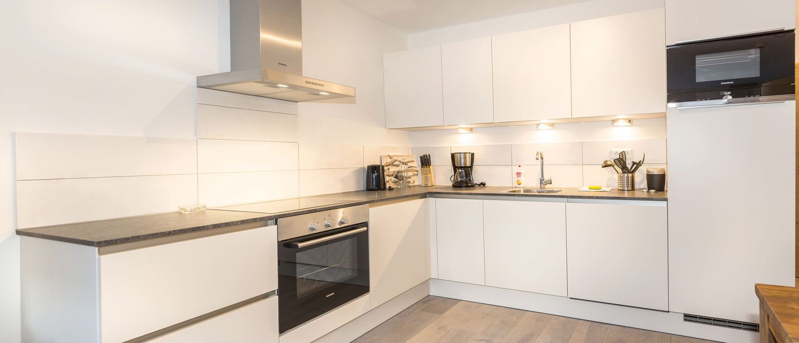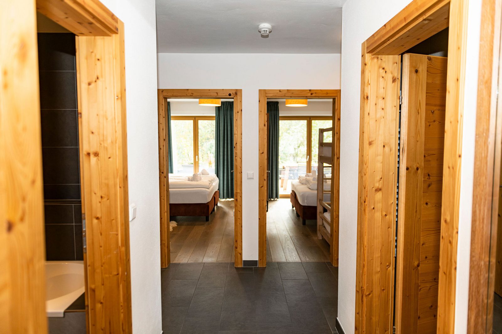 Kaprun Glacier Estate offers 8 luxury apartments and 3 spacious penthouses, accommodating 4 to 14 guests. Each residence is designed for maximum comfort, featuring Tieleman designer kitchens, stylish bathrooms, and cozy living spaces. Guests can unwind in the shared sauna after a day on the slopes or enjoying outdoor activities in the mountains, while the central location provides easy access to the Maiskogelbahn, nearby hiking and skiing trails, the Tauern Spa, and the stunning Zell am See lake, all year round.