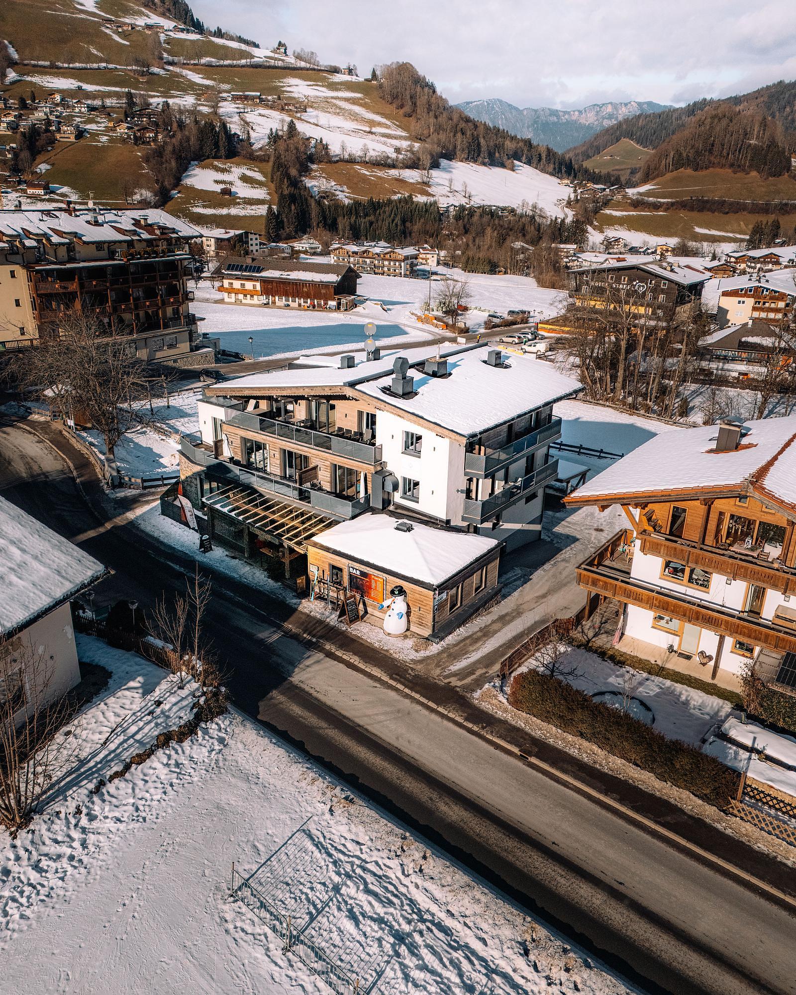 Kristall Plaza Niederau offers 5 stylish apartments for 4 to 10 guests and a luxurious penthouse, each with a terrace or balcony and panoramic mountain views. Located directly opposite the Markbachjoch gondola, the property provides easy access to winter slopes and summer activities, featuring modern interiors, Tieleman design kitchens, and luxurious bathrooms for a comfortable stay all year round.