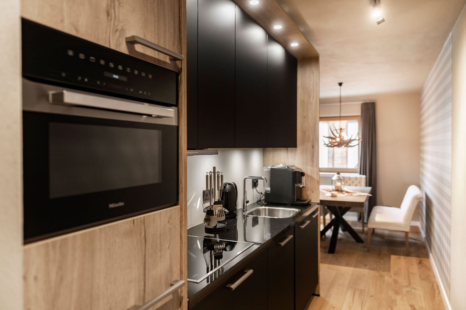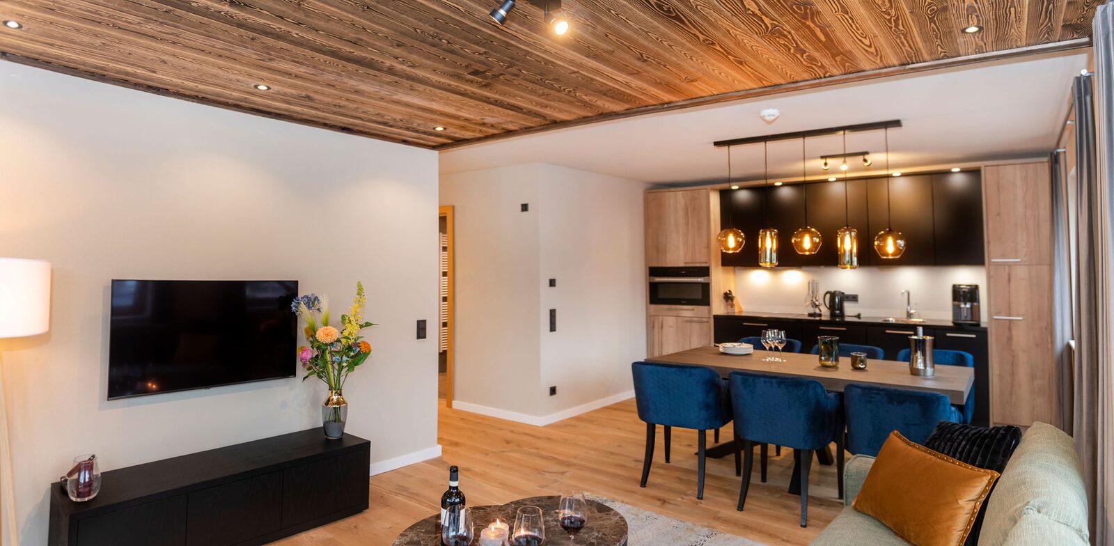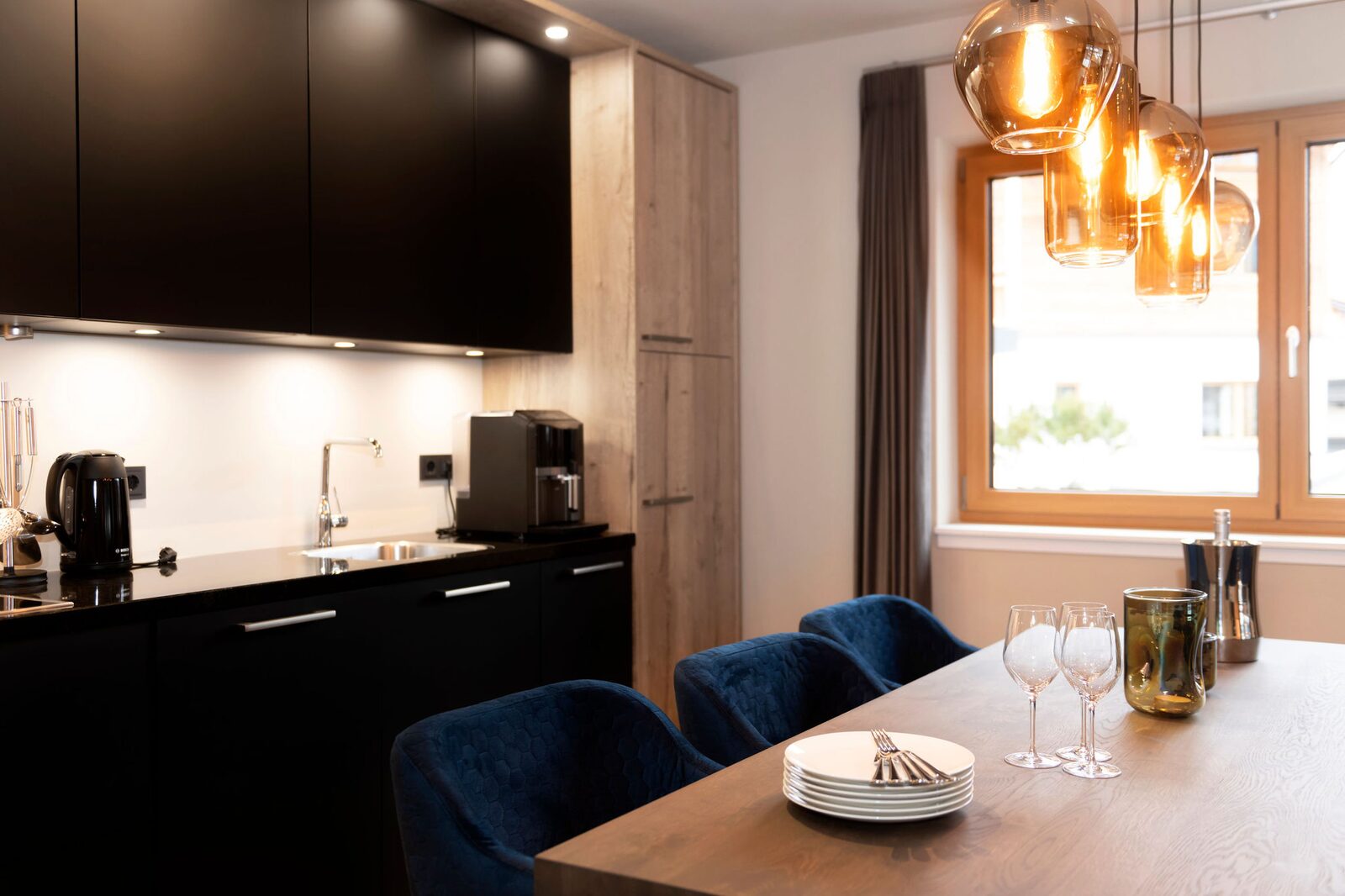 Residenz Illyrica Tirol offers 40 luxury apartments and penthouses for 2 to 14 guests, each equipped with Tieleman designer kitchens, modern bathrooms and comfortable living spaces. Guests can unwind in the wellness area with a jacuzzi, Finnish sauna, steam bath, infrared cabin and relaxation room, while Glennie’s Restaurant in the building serves delicious, family-friendly dishes year-round.