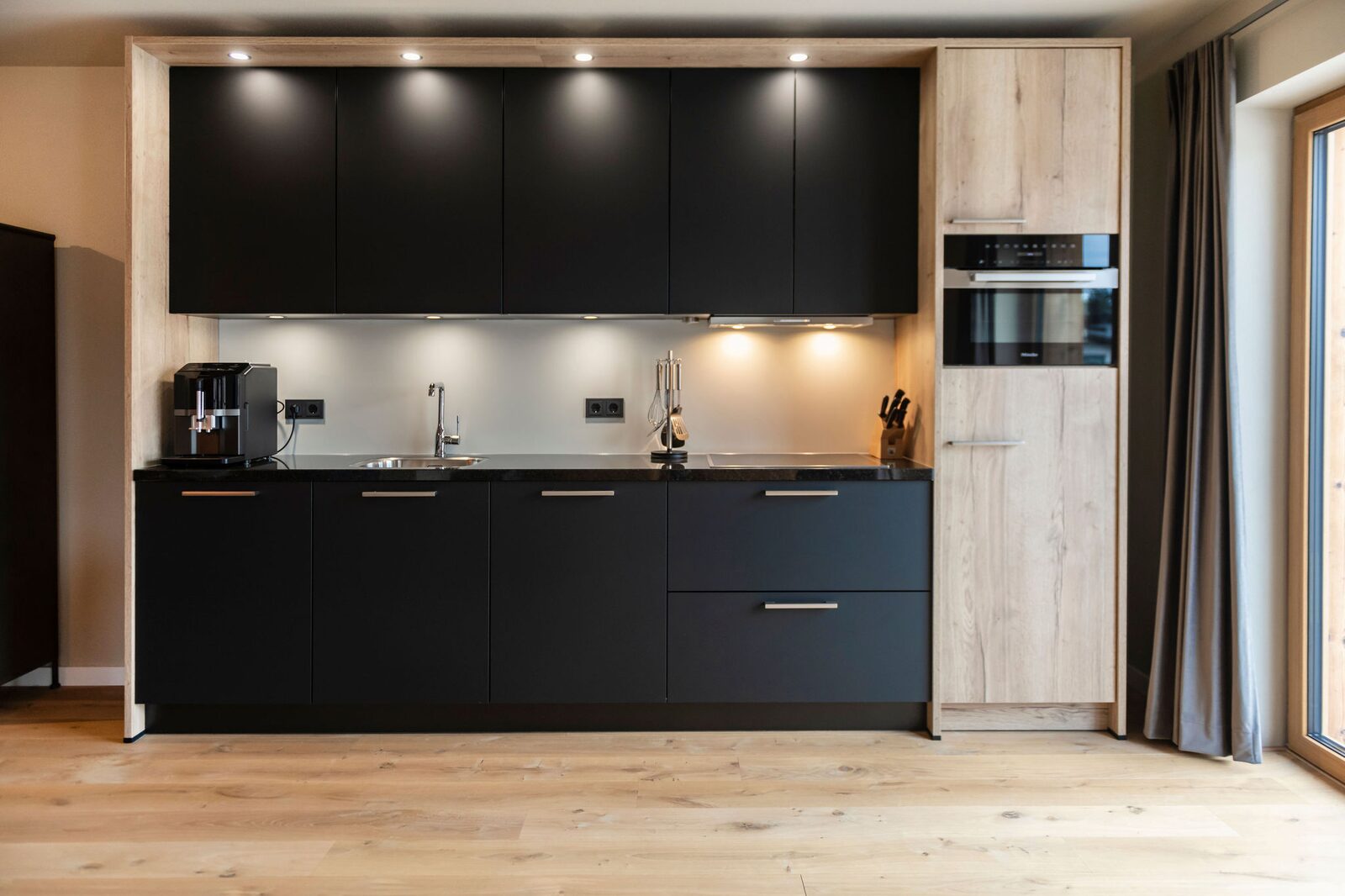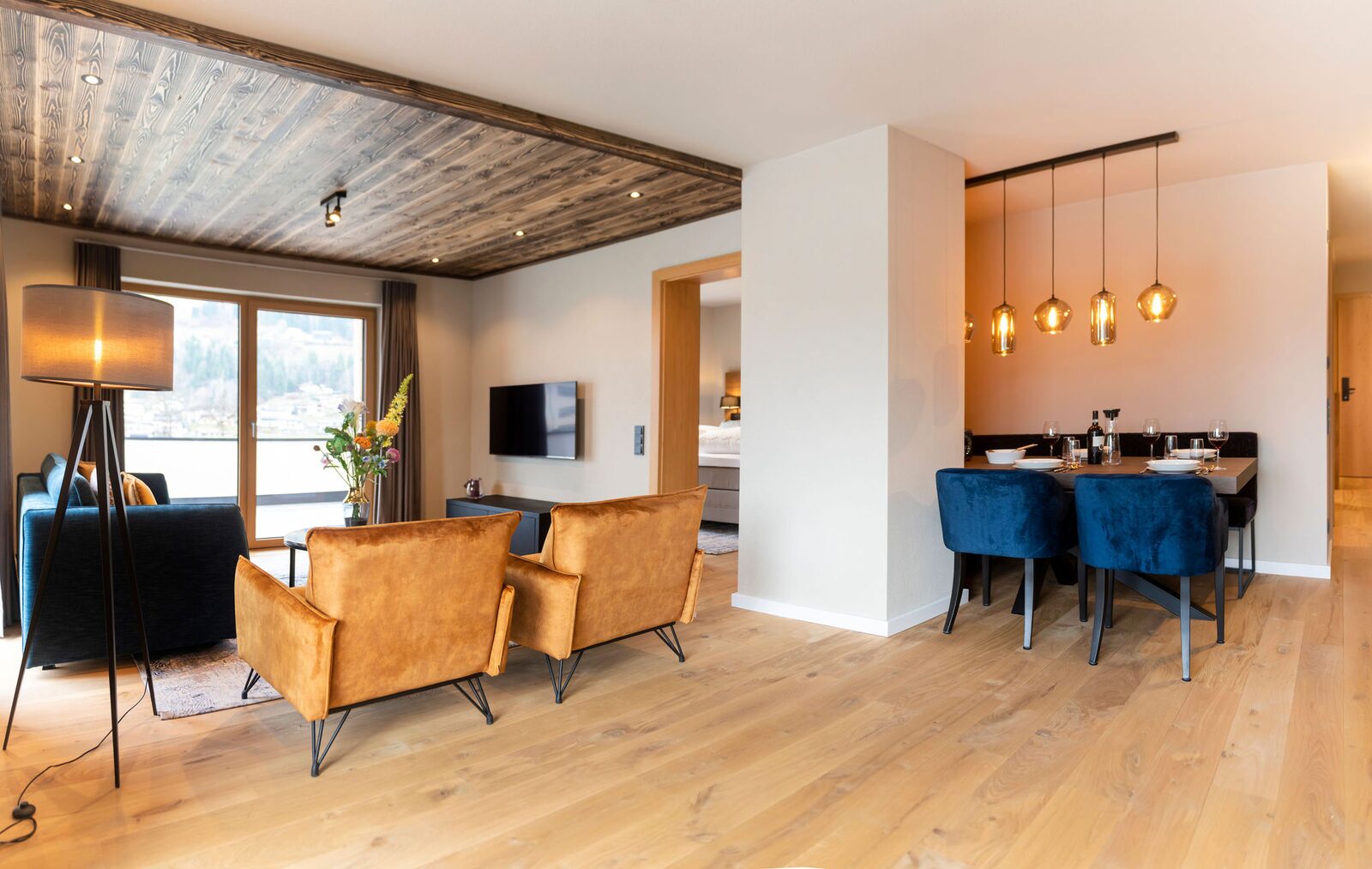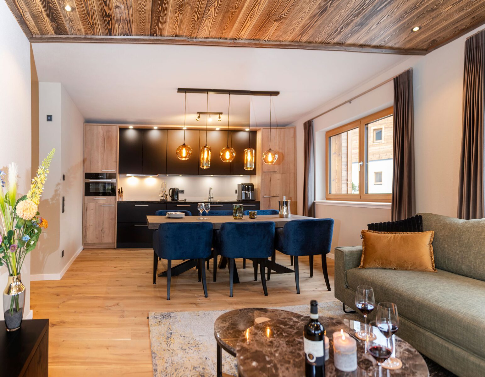 Residenz Illyrica Tirol offers 40 luxury apartments and penthouses for 2 to 14 guests, each equipped with Tieleman designer kitchens, modern bathrooms and comfortable living spaces. Guests can unwind in the wellness area with a jacuzzi, Finnish sauna, steam bath, infrared cabin and relaxation room, while Glennie’s Restaurant in the building serves delicious, family-friendly dishes year-round.